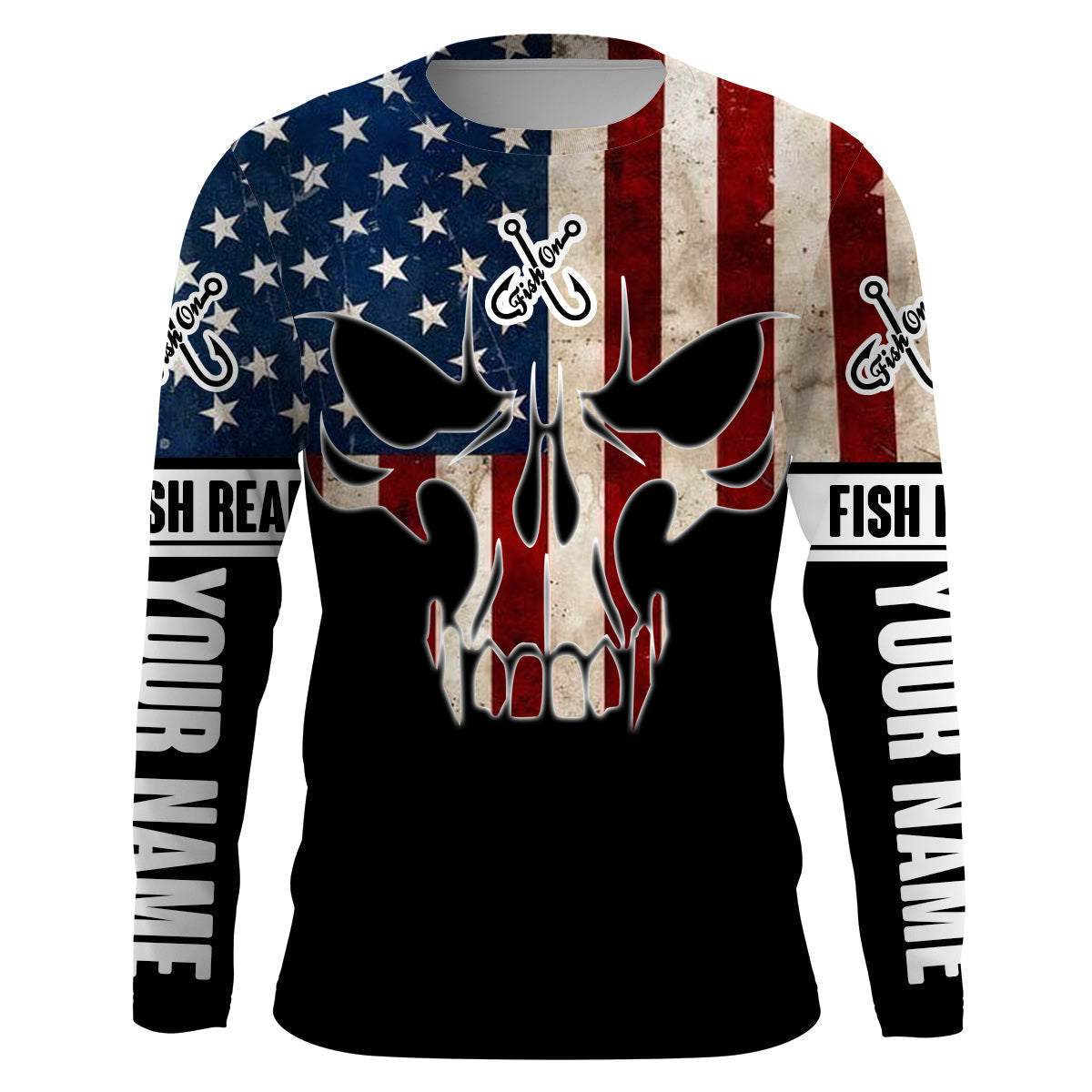 Bluejose American Flag Fish Reaper Custom Long Sleeve Shirts , Personalized Patriotic Fishing Gifts