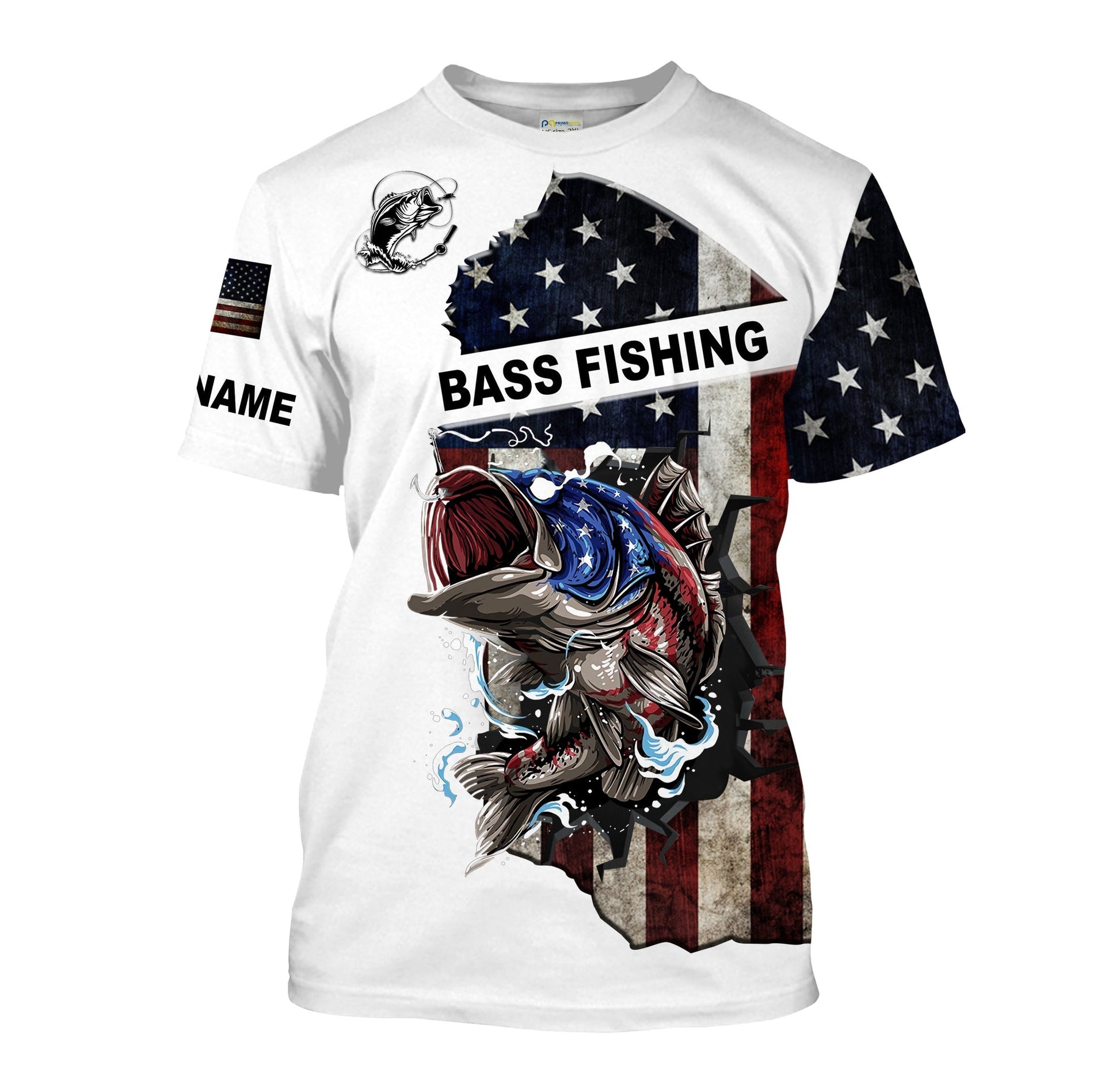 BlueJose American Flag Largemouth Bass Customize Name Fishing Shirt