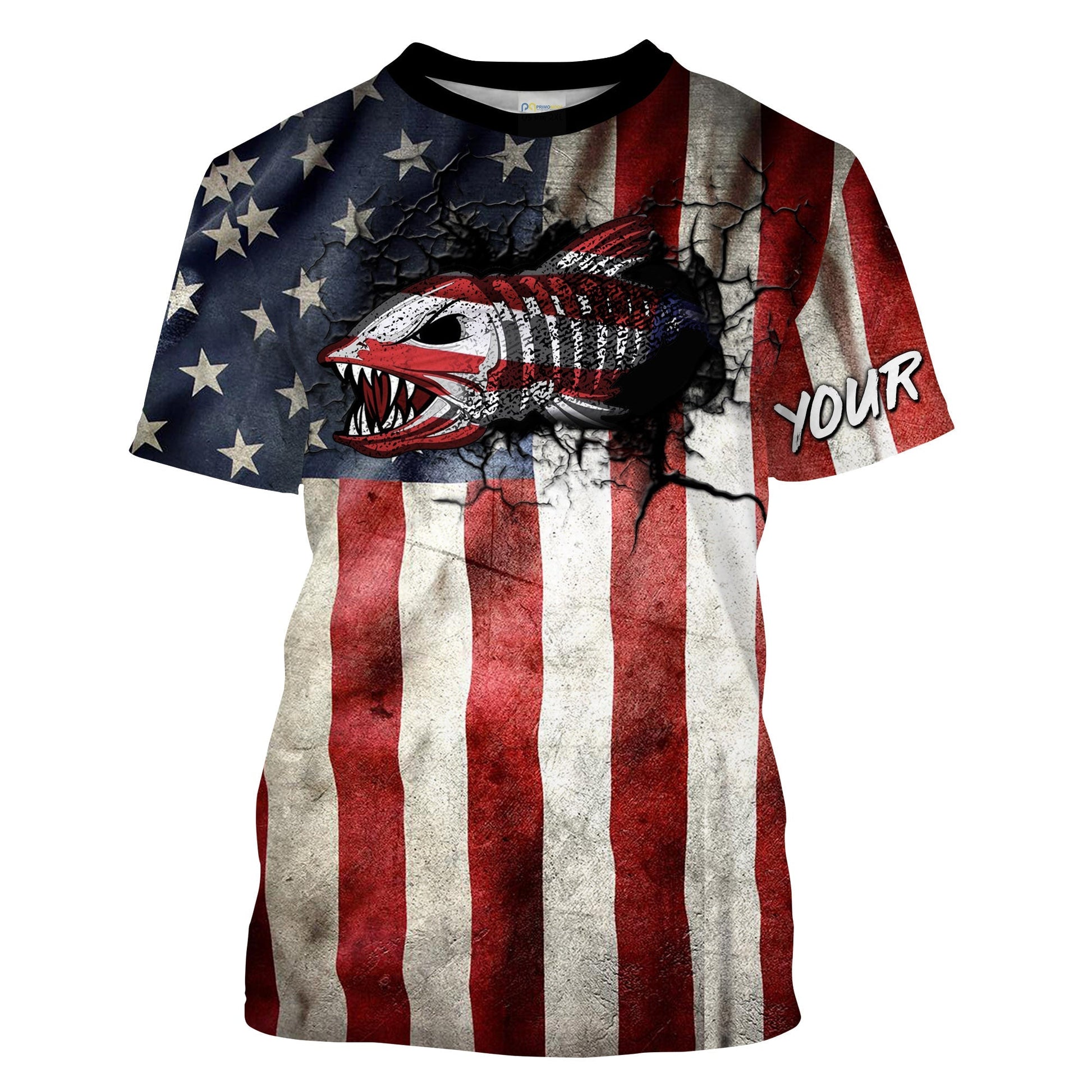 BlueJose American Flag Patriotic Fish Reaper Customize Name Fishing T-Shirt
