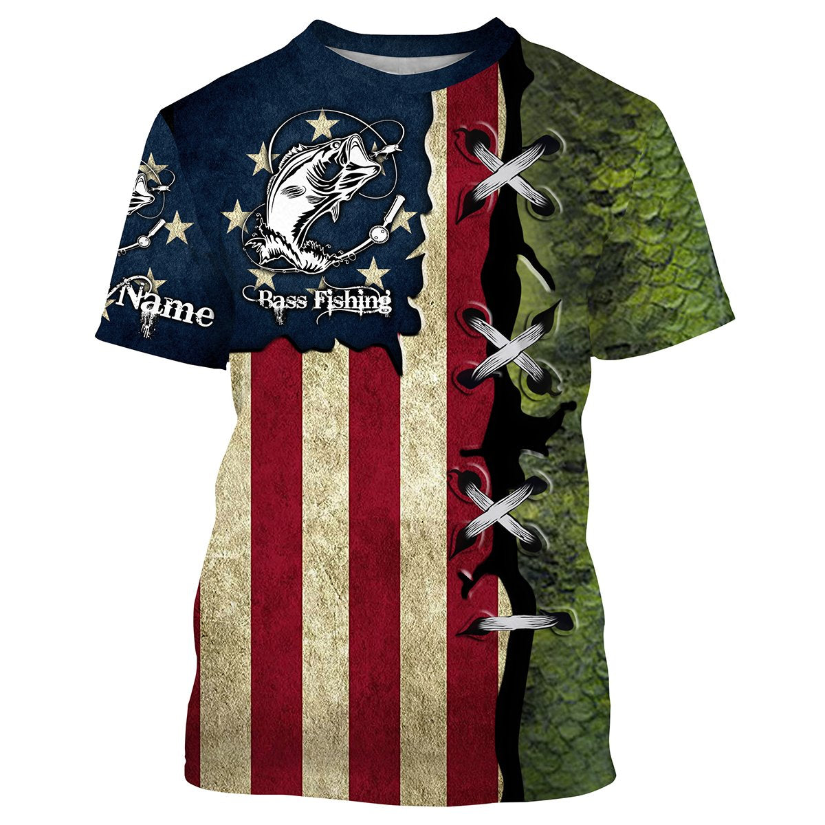 Bluejose Bass Fishing American Flag Patriotic Custome Name 3D All Over Printed Shirts, Personalized Fishing Gift