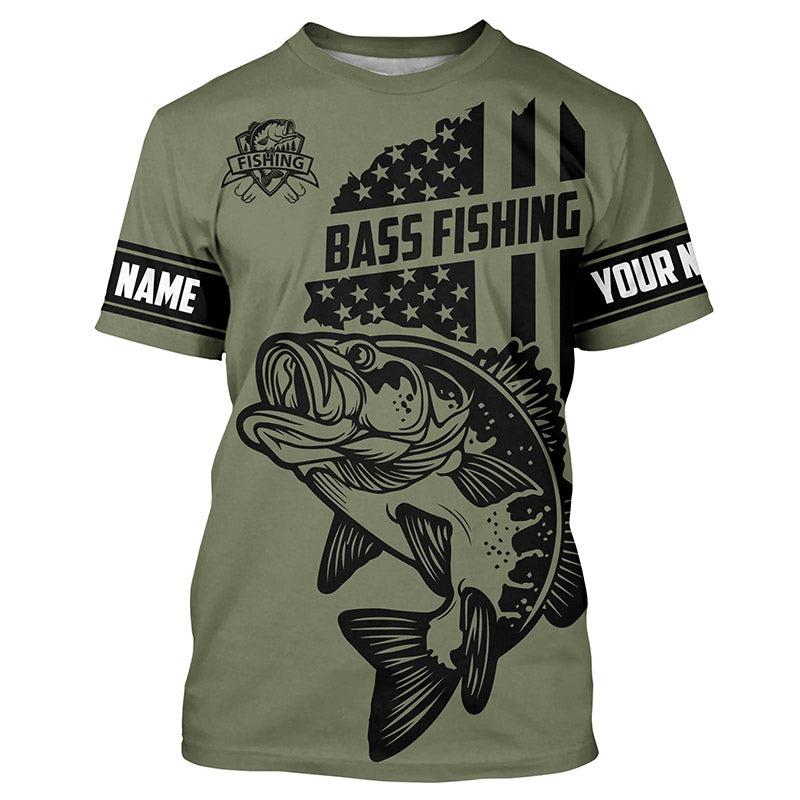 BlueJose Bass Hunter Fishing American Flag Custom Name Shirt
