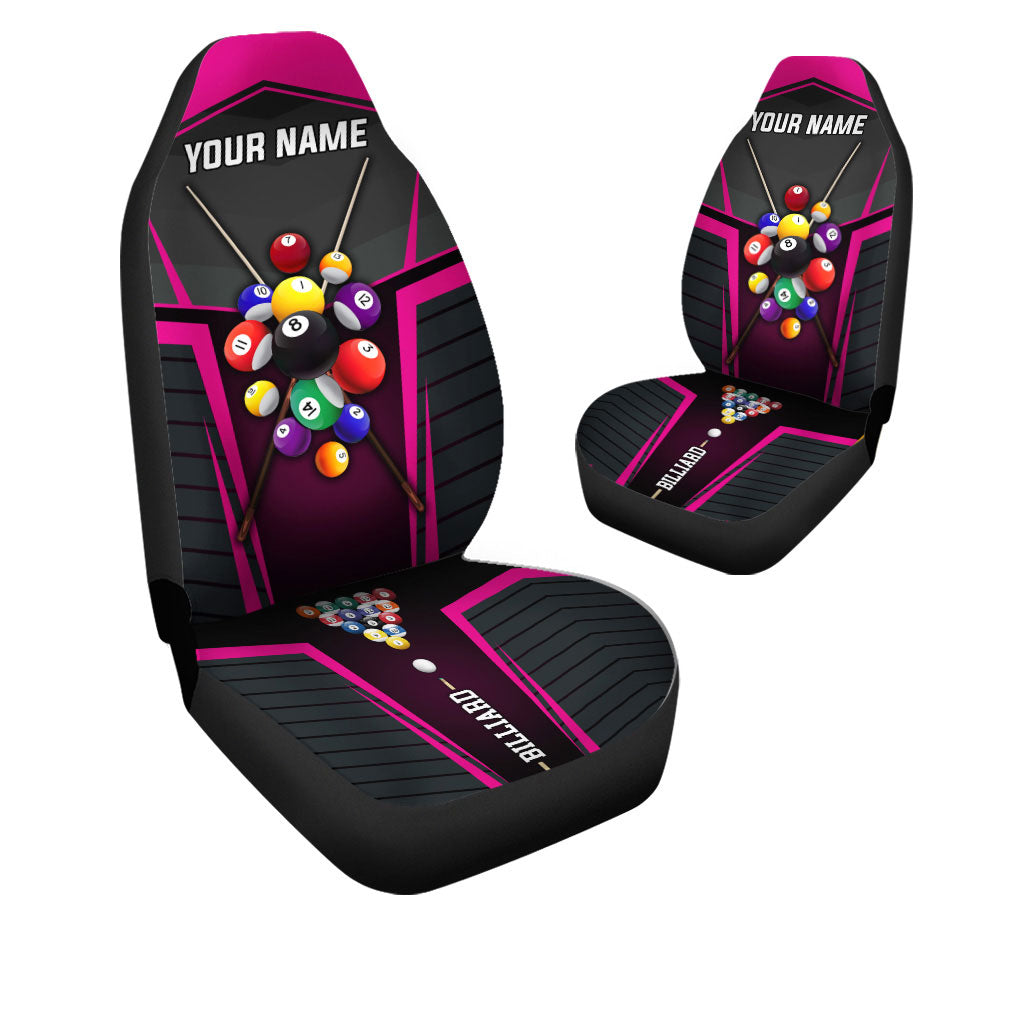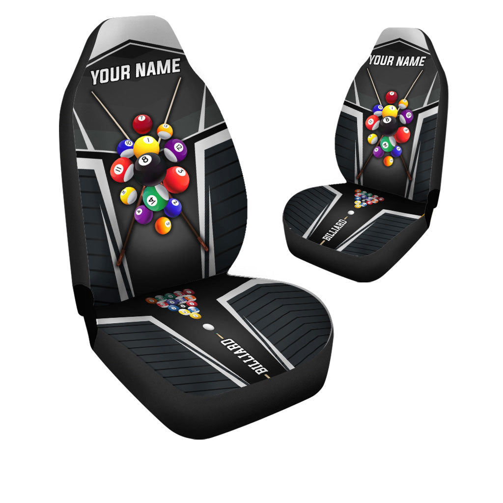 BlueJose Billiard 8 Colors Personalized Name Car Seat Covers Universal Fit (2Pcs)
