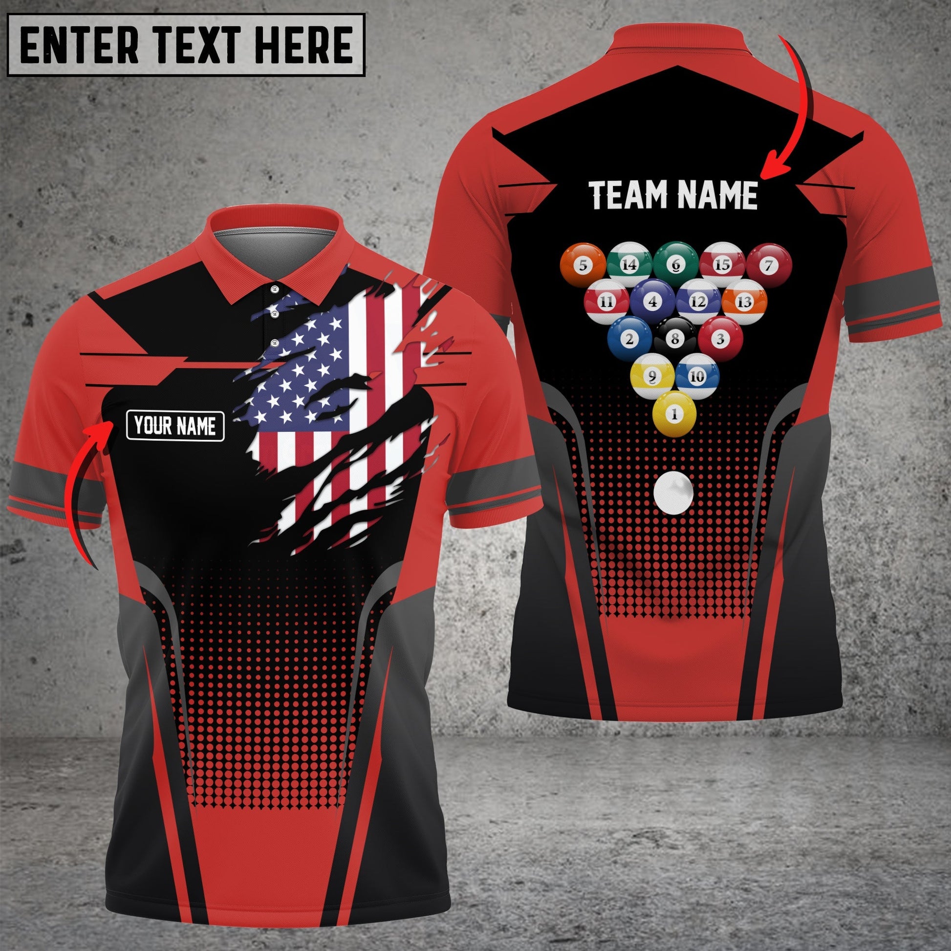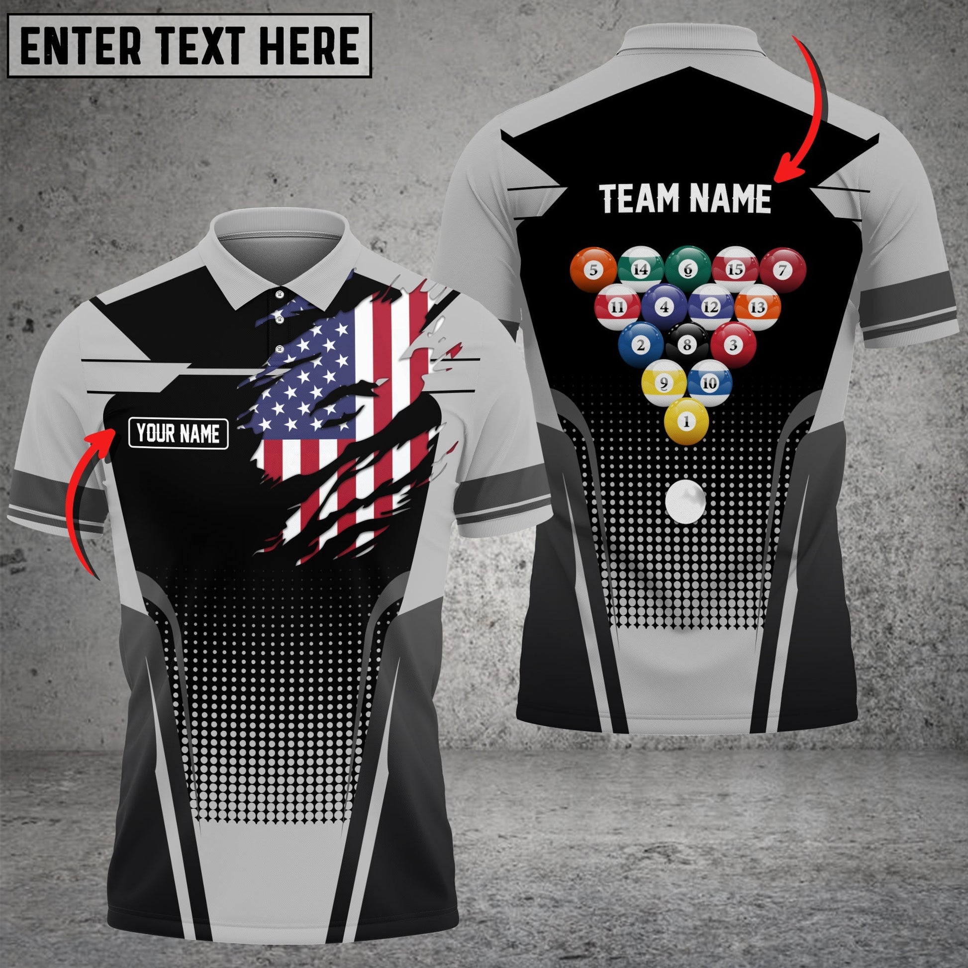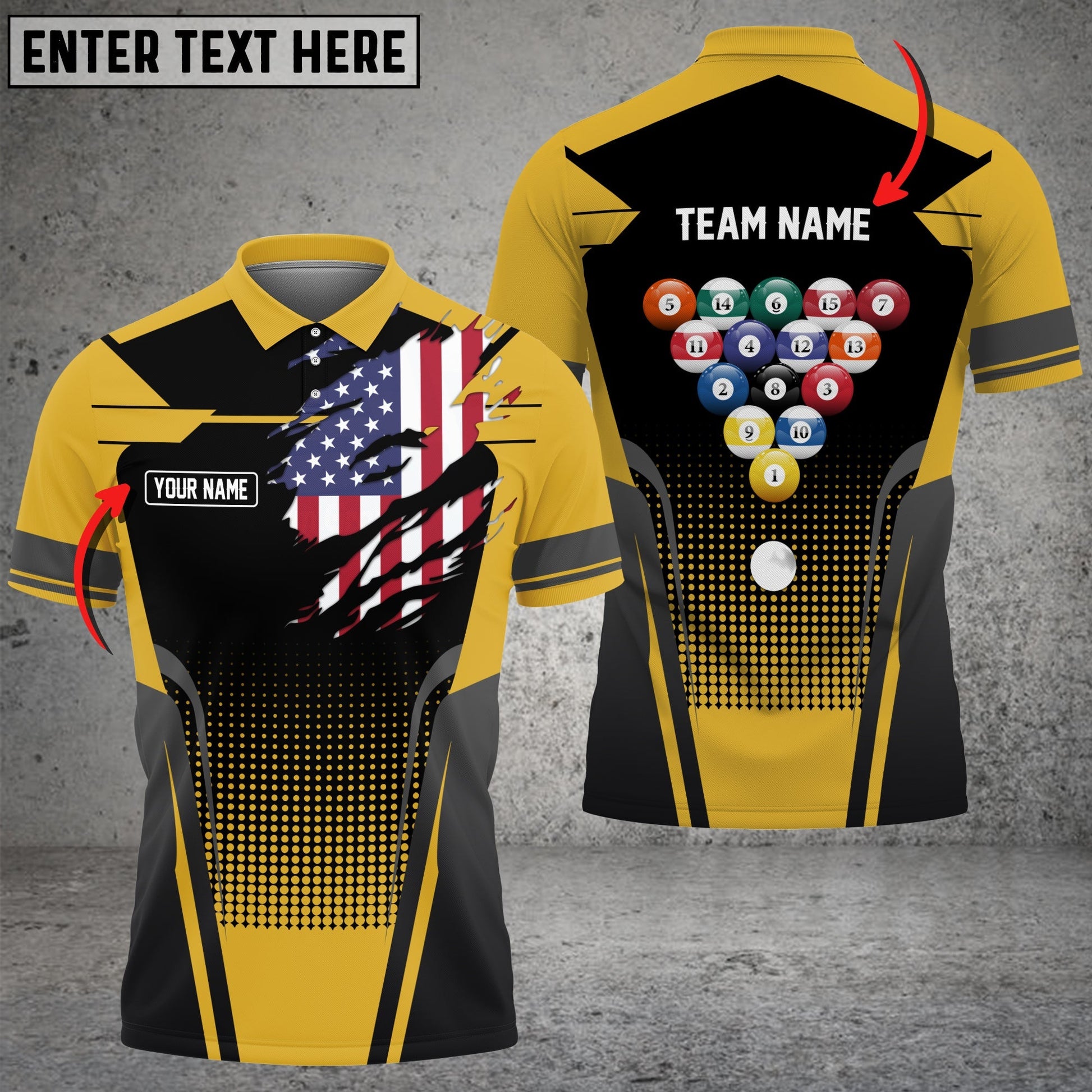 BlueJose Billiard American Flag Personalized Name, Team Name Unisex Polo Shirt