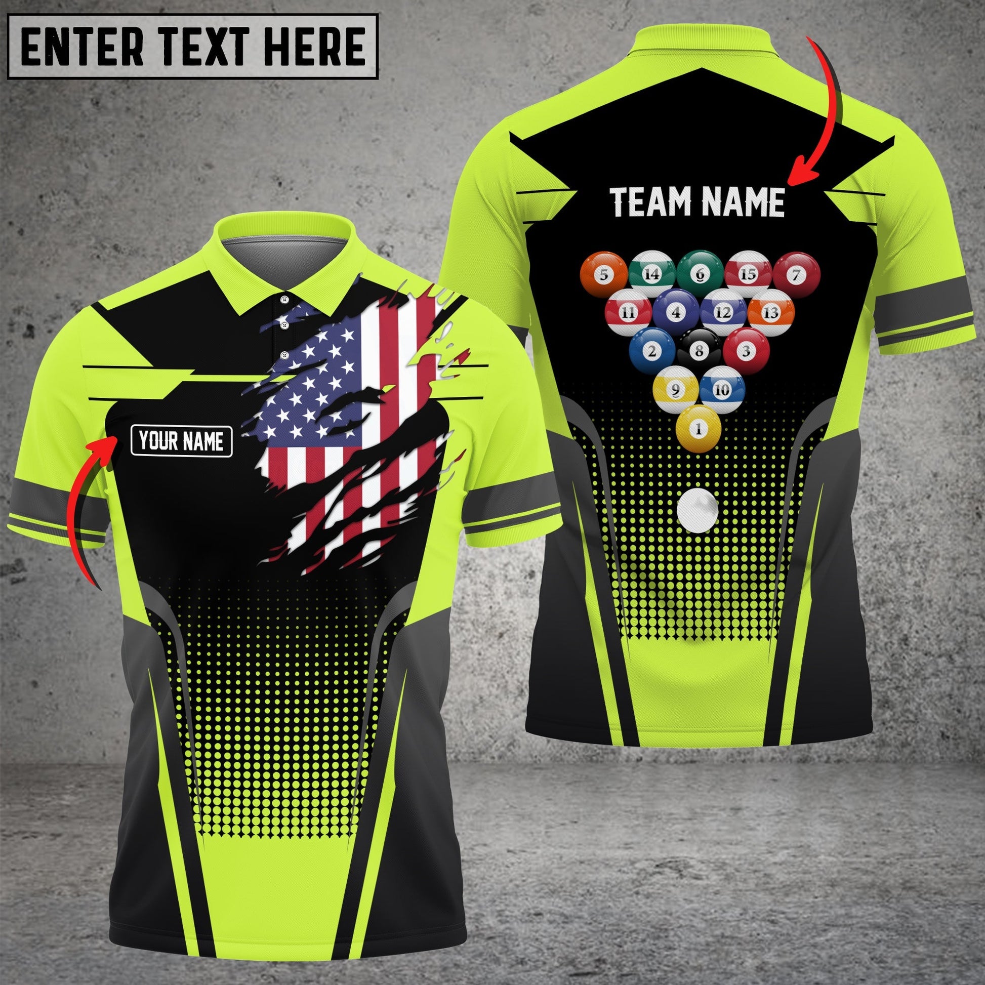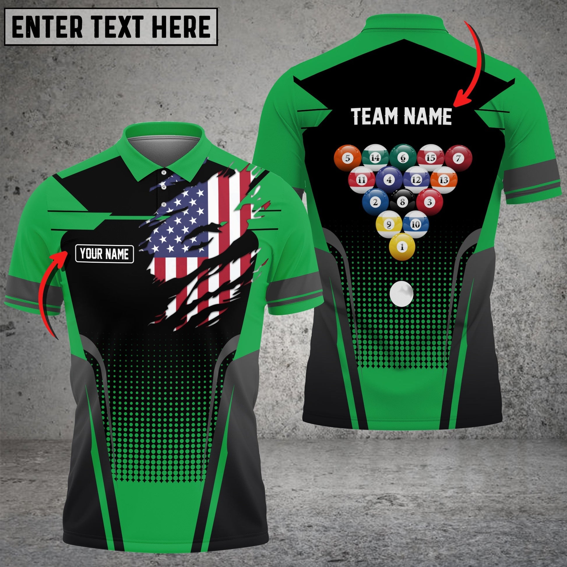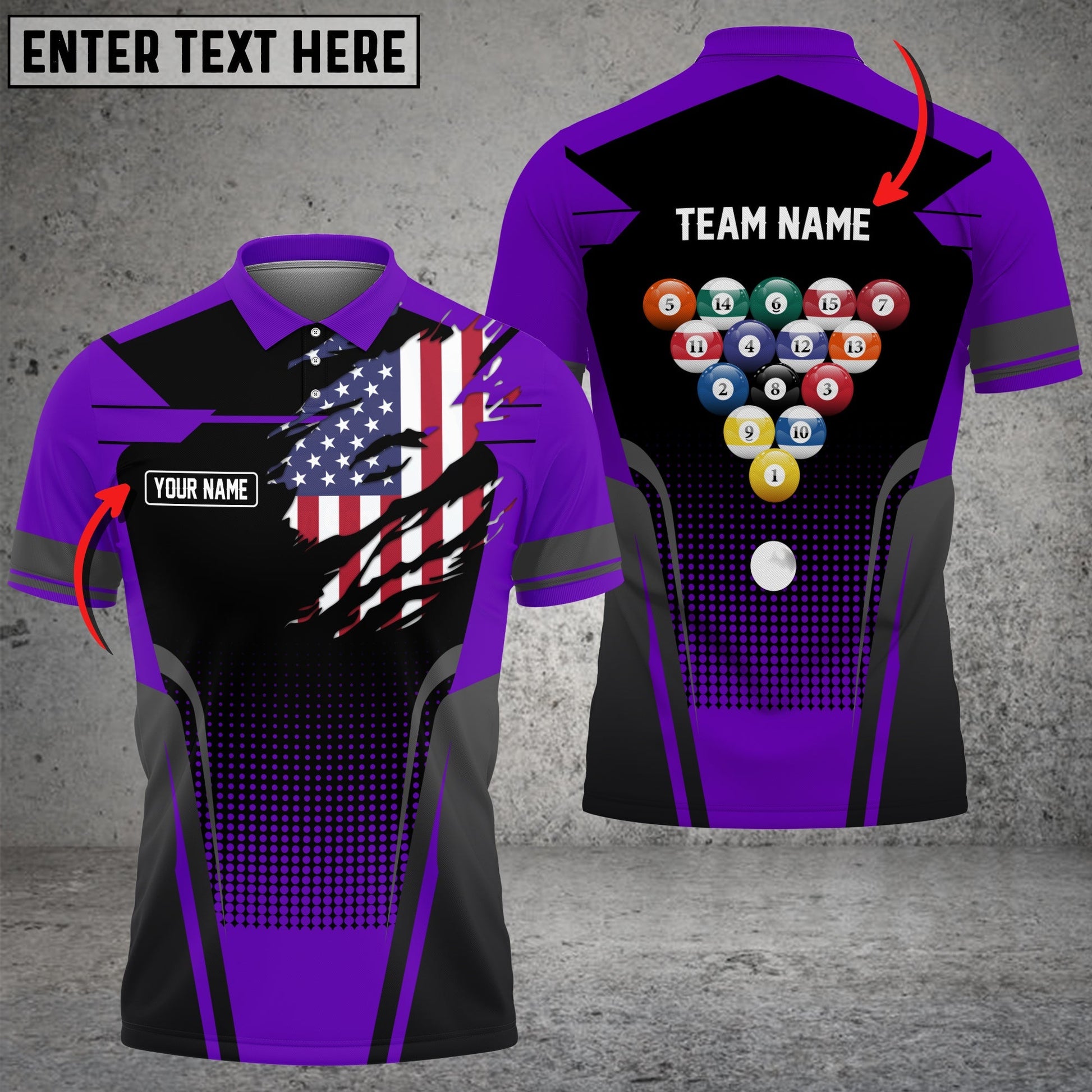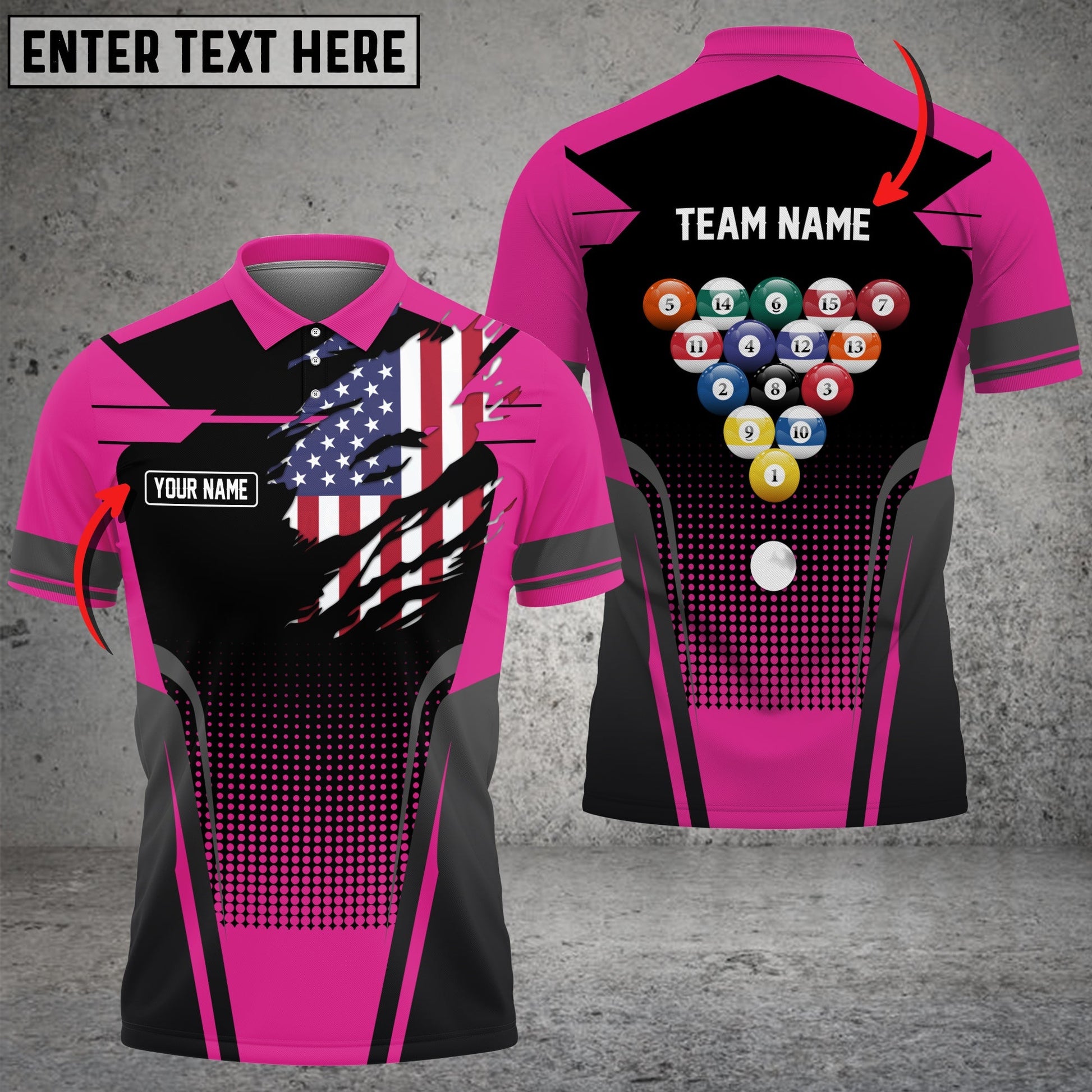 BlueJose Billiard American Flag Personalized Name, Team Name Unisex Polo Shirt