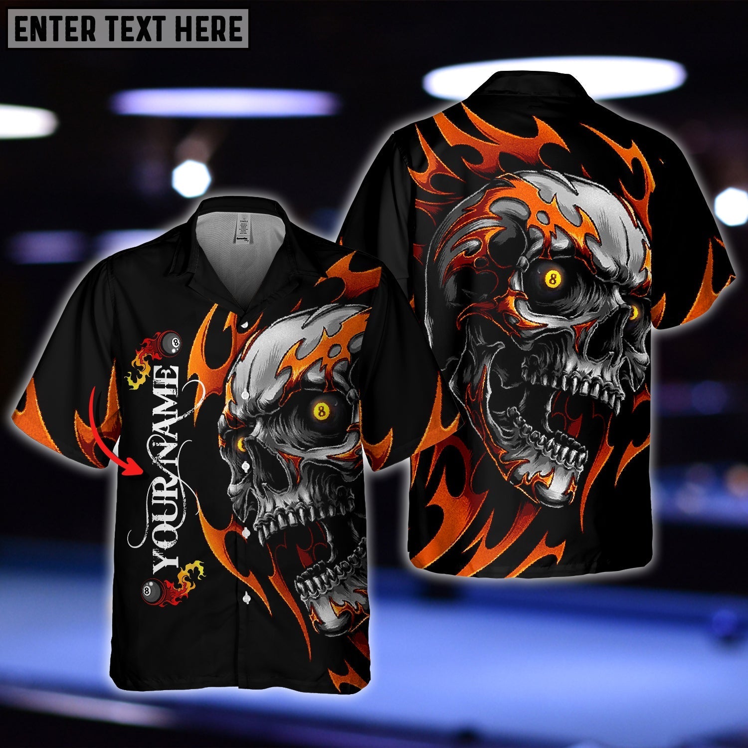 BlueJose Personalized Name Skull Fire Billiard Balls Hawaiian Shirt