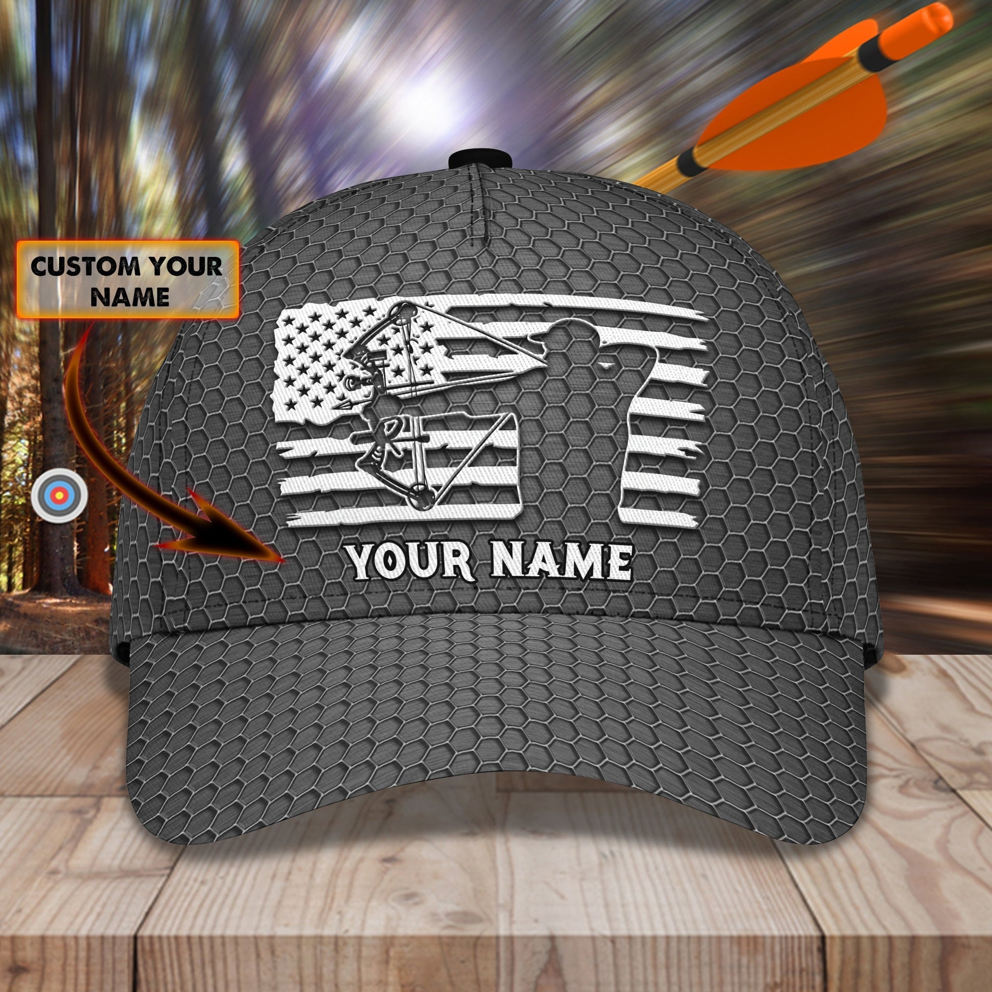 BlueJose Archery US Flag Grey Personalized Name Cap