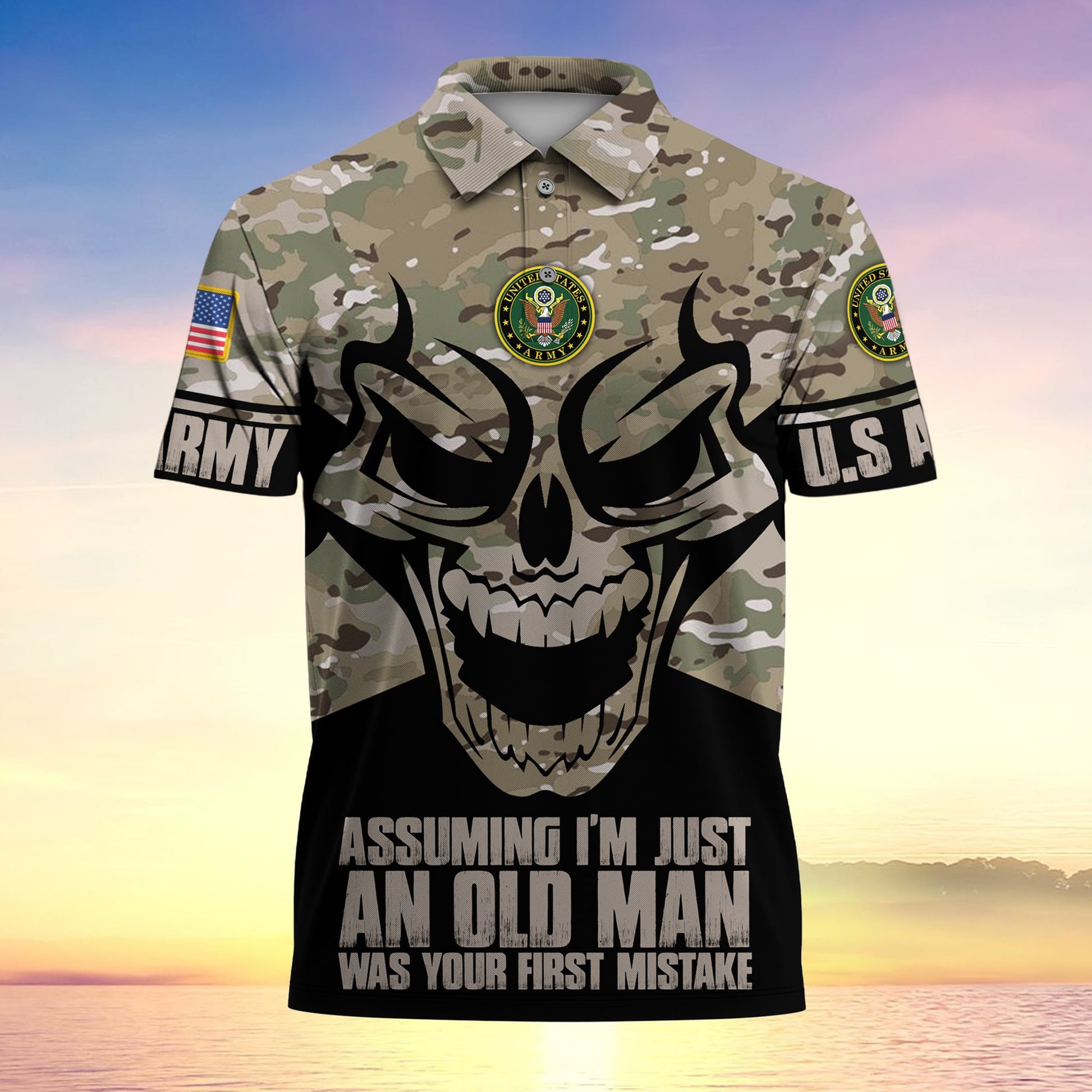 BlueJose Assuming I'm Just An Old Man Was Your First Mistake US Veteran MultiService Polo Shirt
