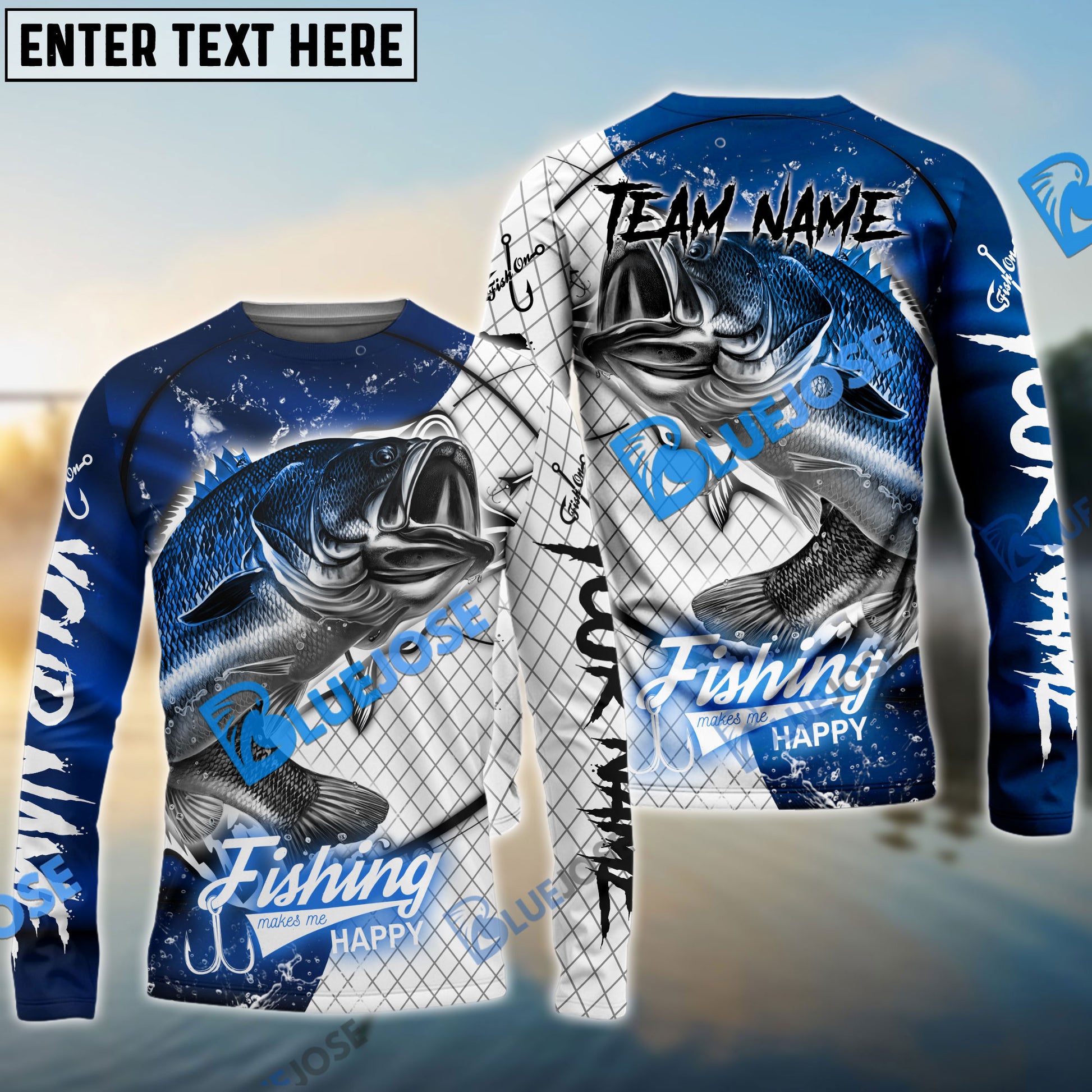 Bluejose Bass Fishing Dark Blue Skin Sport Custom Name & Team Name 3D Shirts
