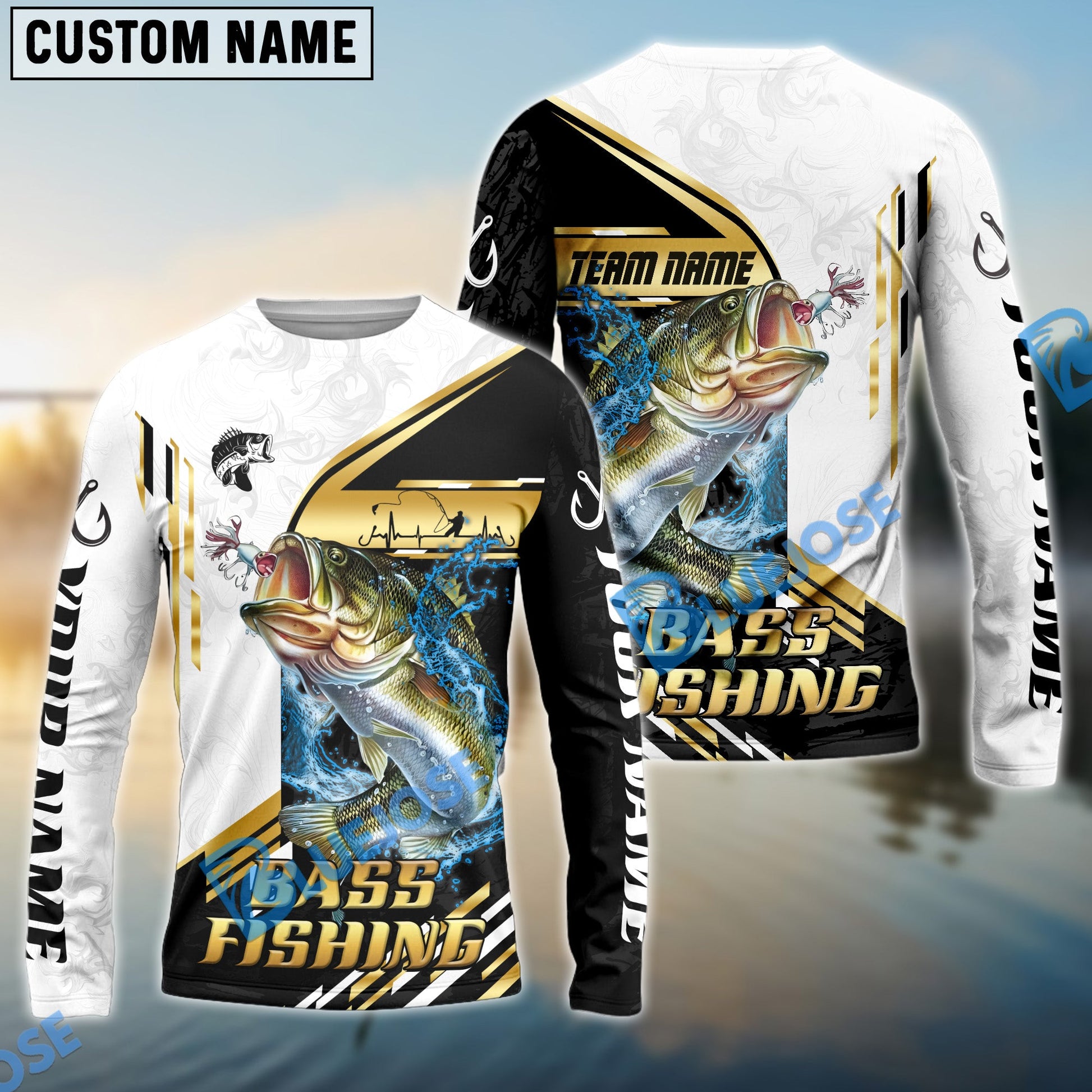 Bluejose Bass Fishing Hook Graphic & Jumping Fish Art Custom Name & Team Name 3D Shirts