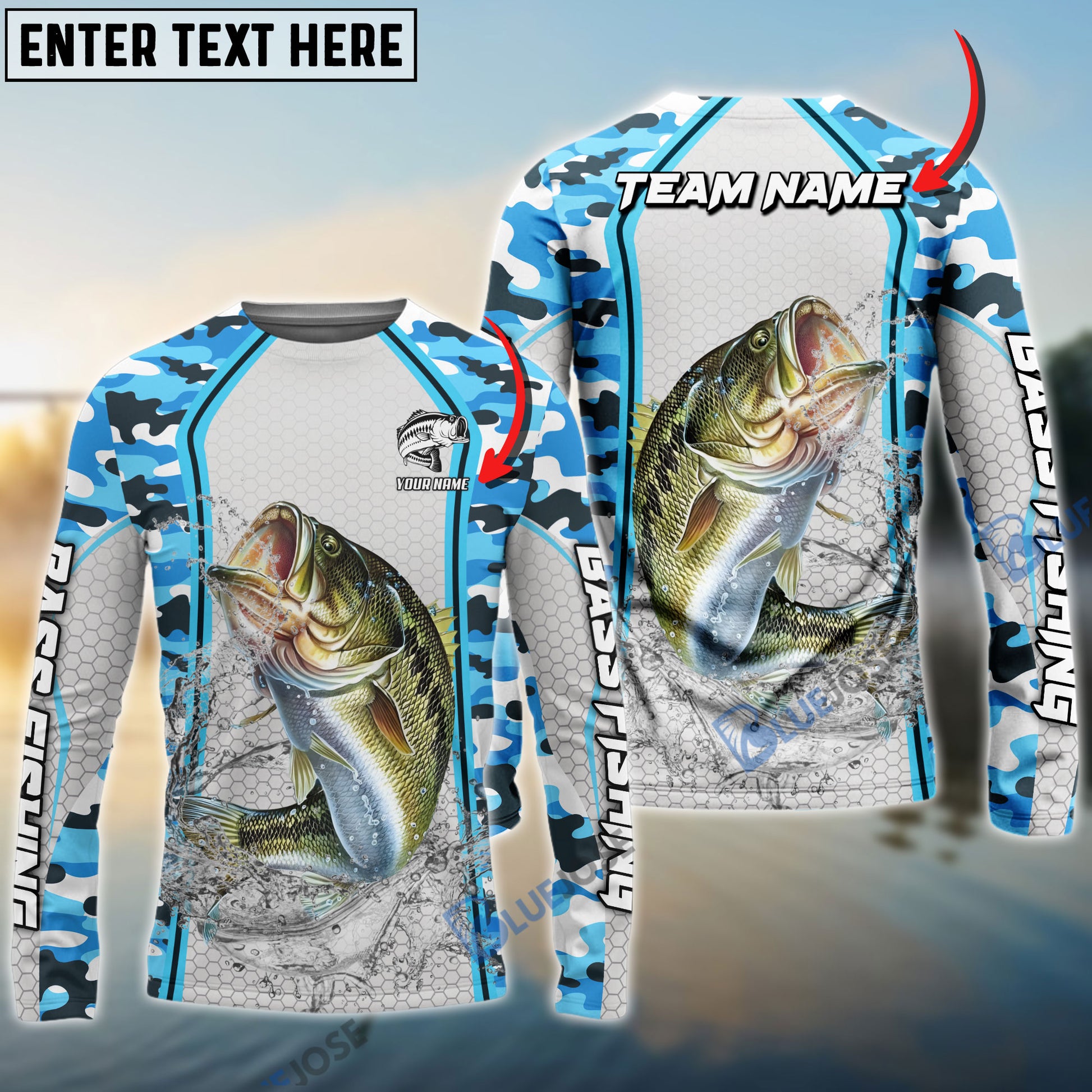 Bluejose Bass Fishing Light Blue Camo Sport Custom Name & Team Name 3D Shirts