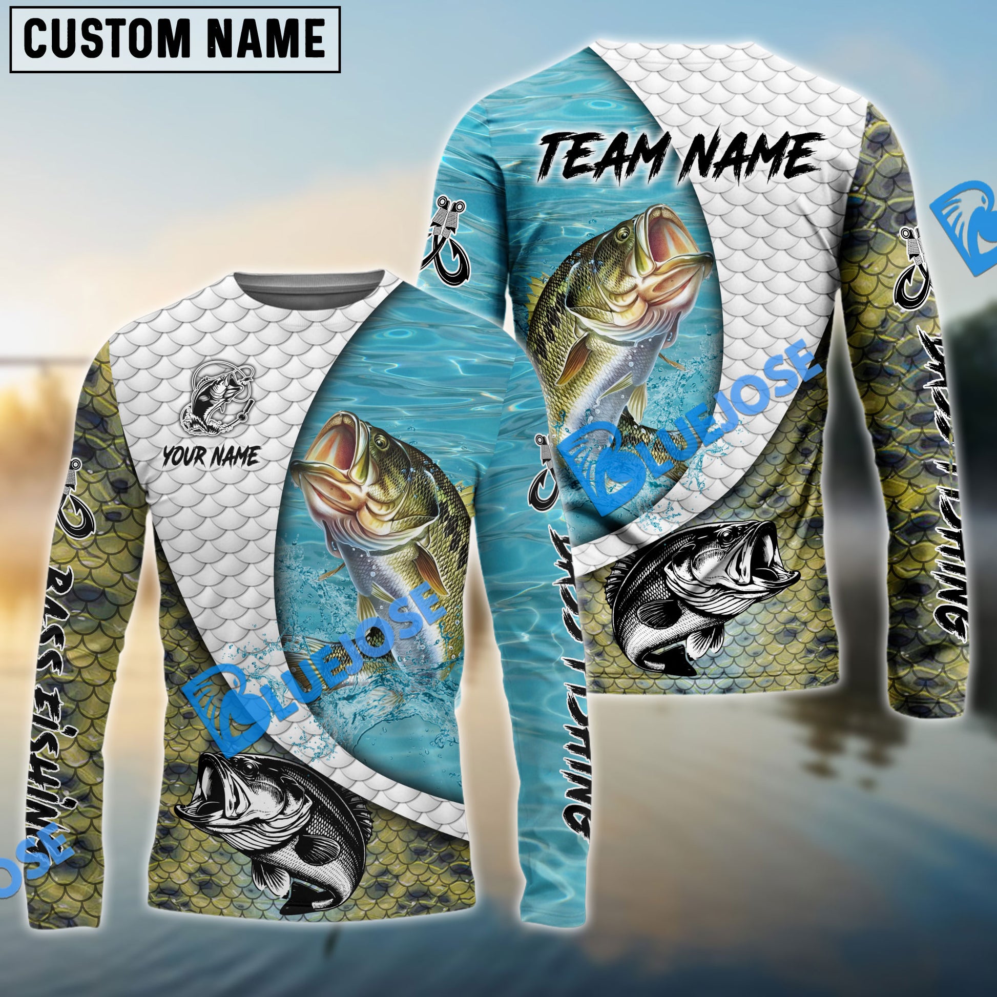 Bluejose Bass Fishing White Skin Diagonal Custom Name & Team Name 3D Shirts