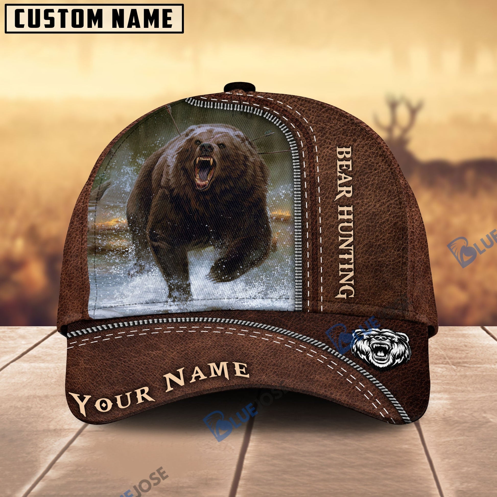 BlueJose Bear Hunting Leather Pattern Personalized Name Cap