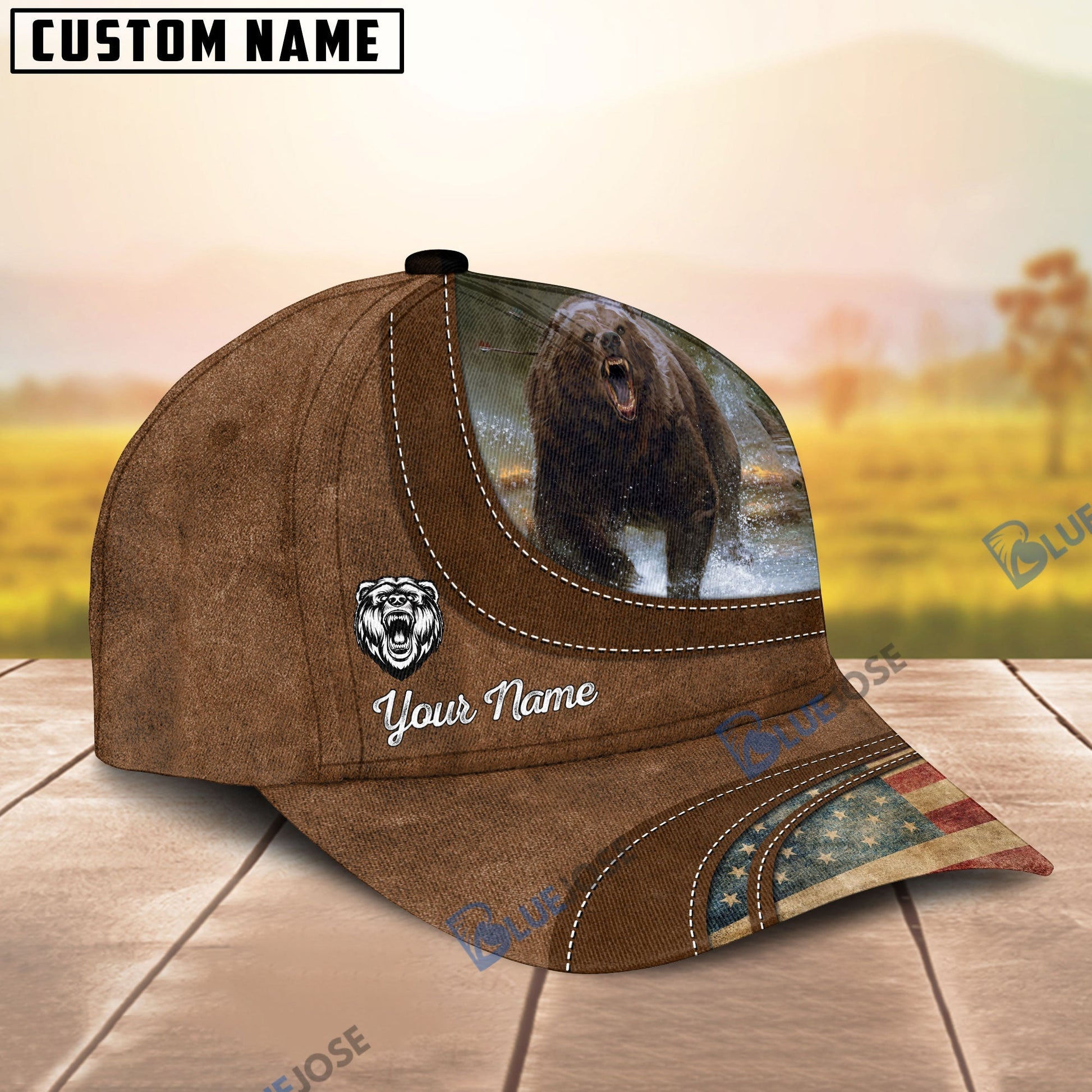 BlueJose Bear Hunting Leather Pattern Personalized Cap