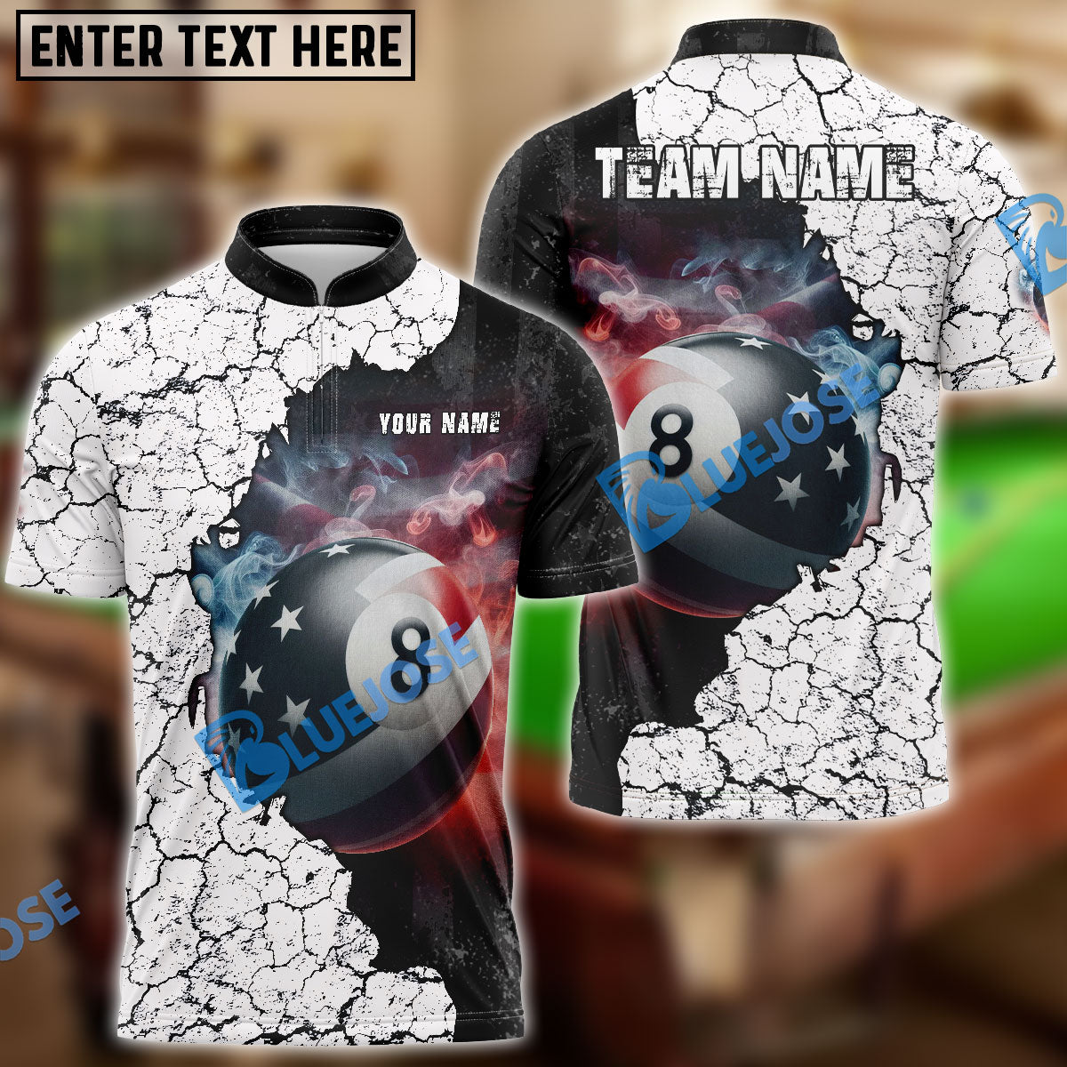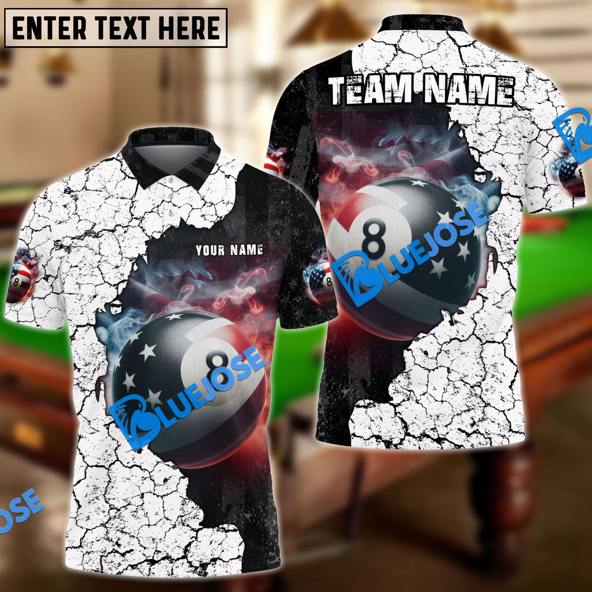 BlueJose Billiard Ball 8 Cracked Wall American Flag Personalized Name, Team Name Unisex Shirt
