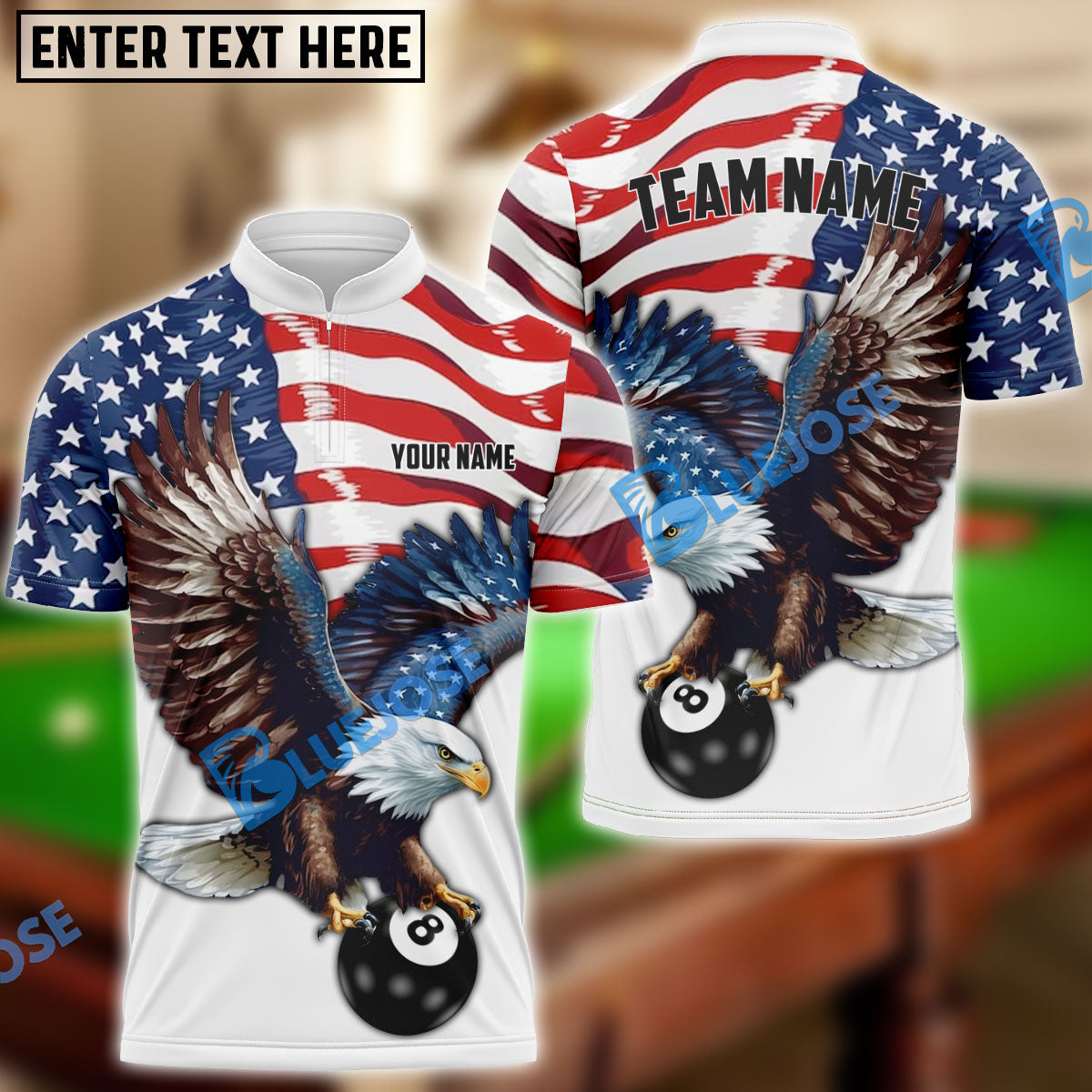 BlueJose Billiards 8 Ball Eagle US Flag Retro Personalized Name, Team Name Unisex Shirt