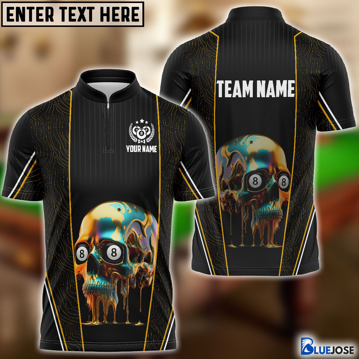 BlueJose Billiard Golden Skull Customized Name 3D Shirt