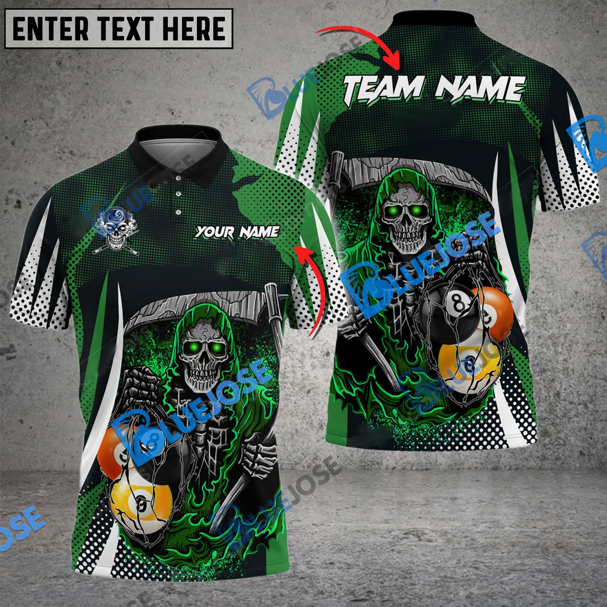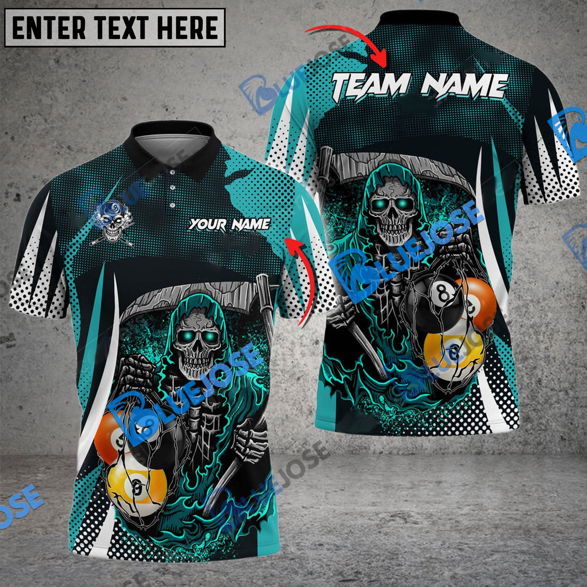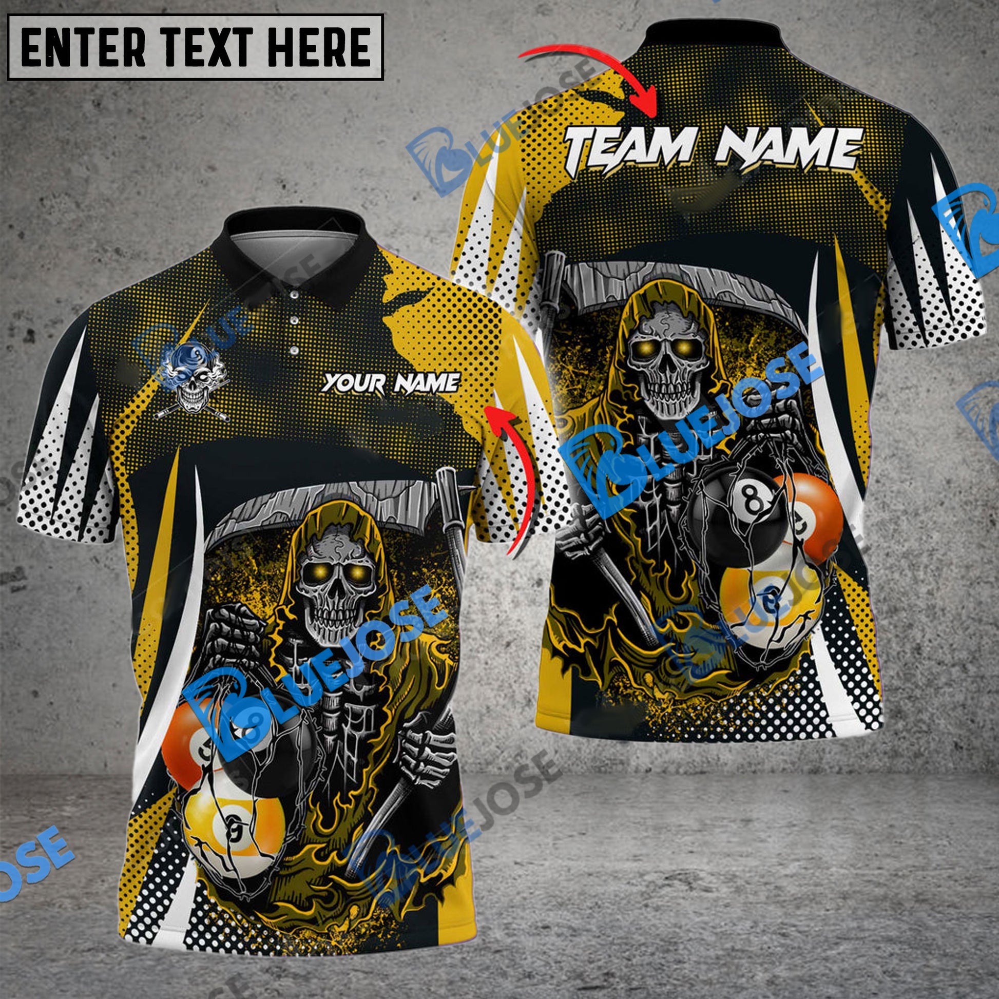 BlueJose Billiards 8 Ball & 9 Ball Death Bringer Reaper Personalized Name, Team Name Unisex Shirt ( 6 Colors )