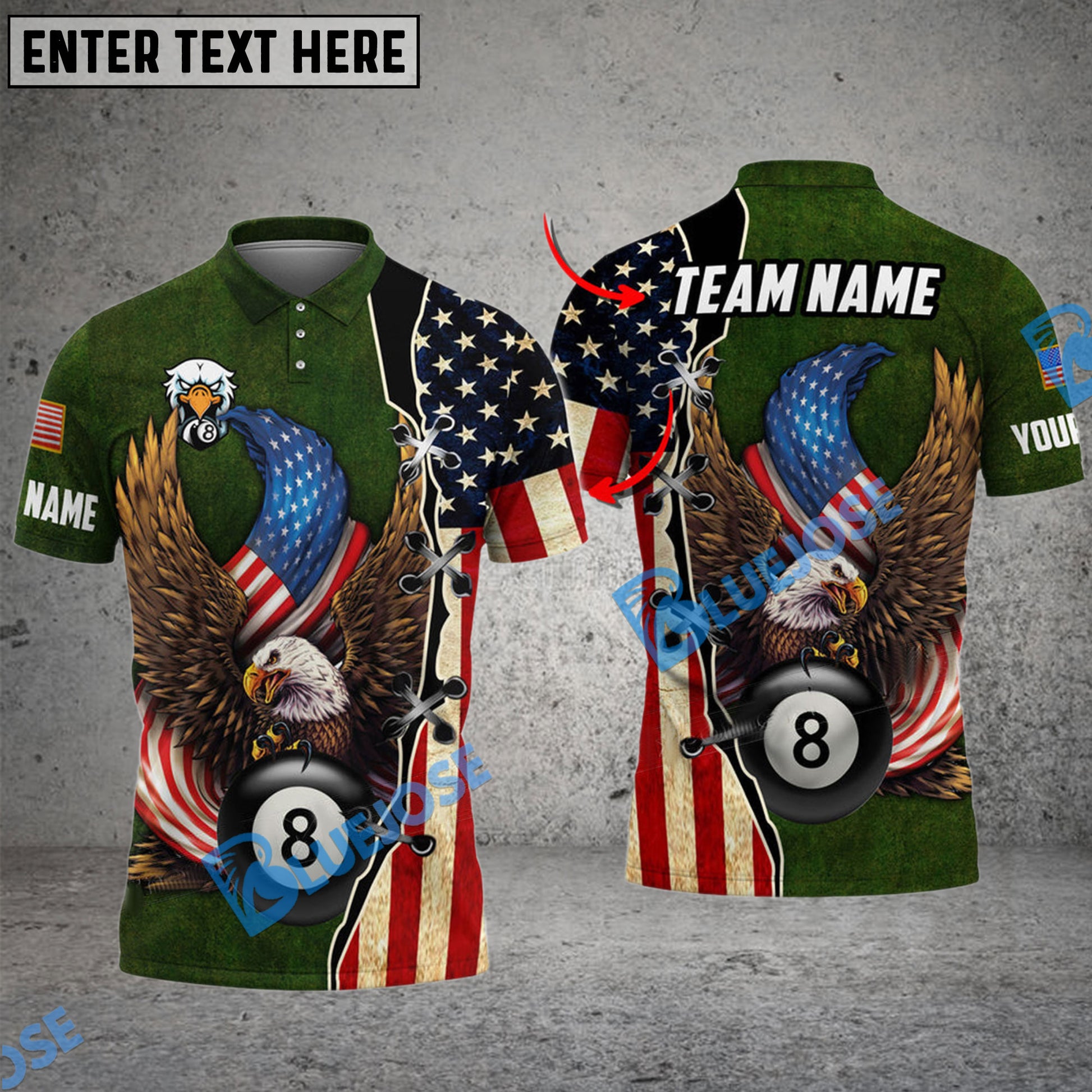 BlueJose Billiards 8 Ball American Eagle Flag Crack Personalized Name, Team Name Unisex Shirt ( 4 Colors )