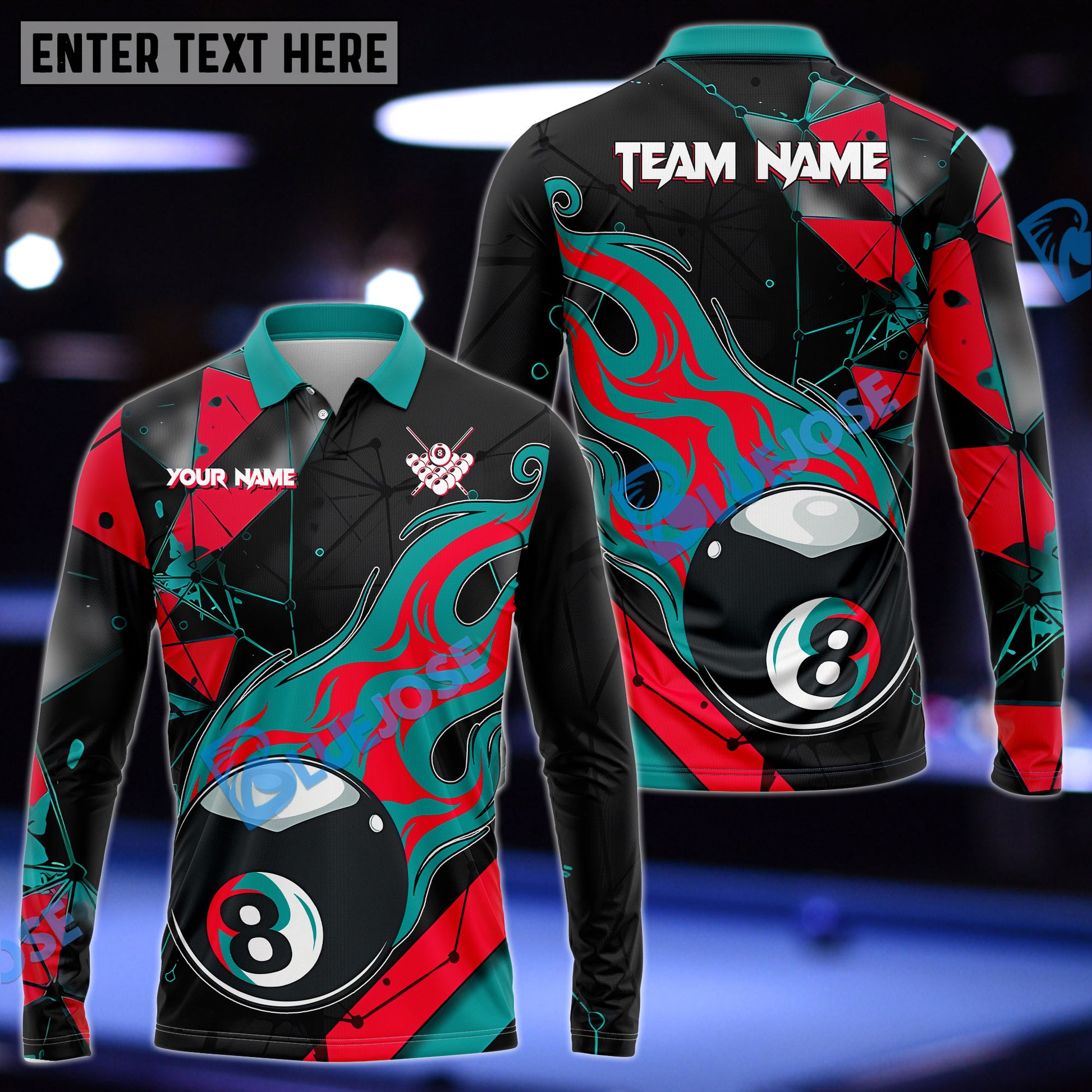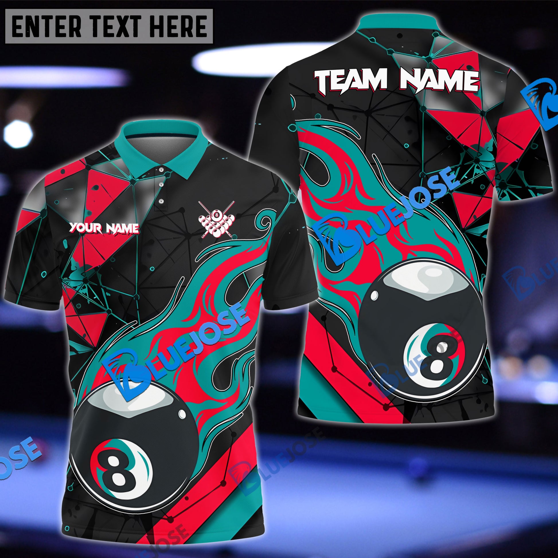 BlueJose Billiards 8 Ball Peaceful Fire Personalized Name, Team Name Shirt