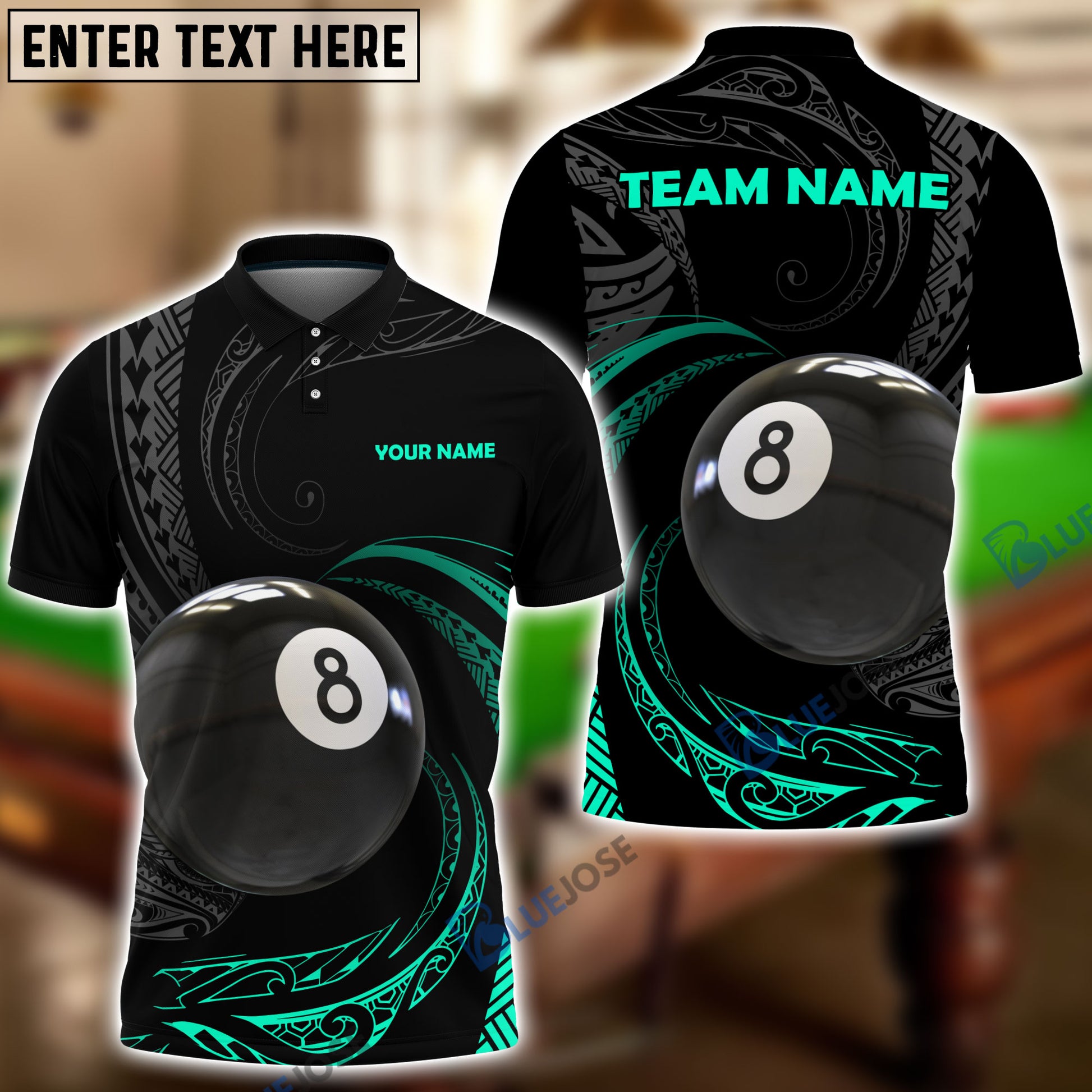 BlueJose Billiards 8 Ball Rolling Tribal Pattern Personalized Name, Team Name Shirt