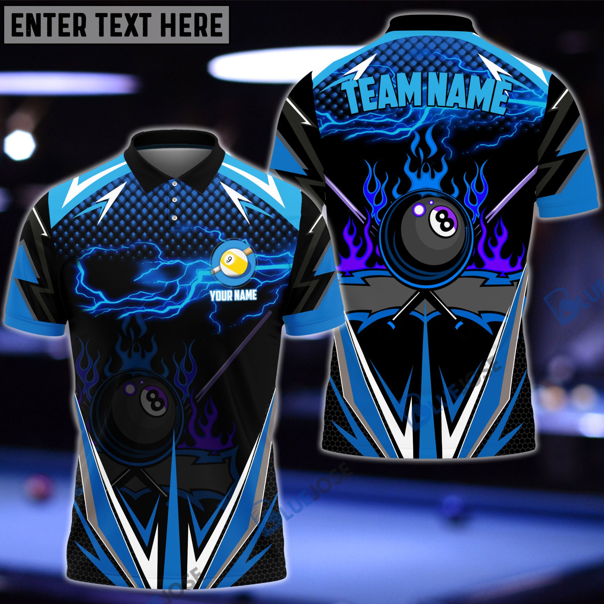 BlueJose Billiards 9 Ball Blue Fire Personalized Shirt