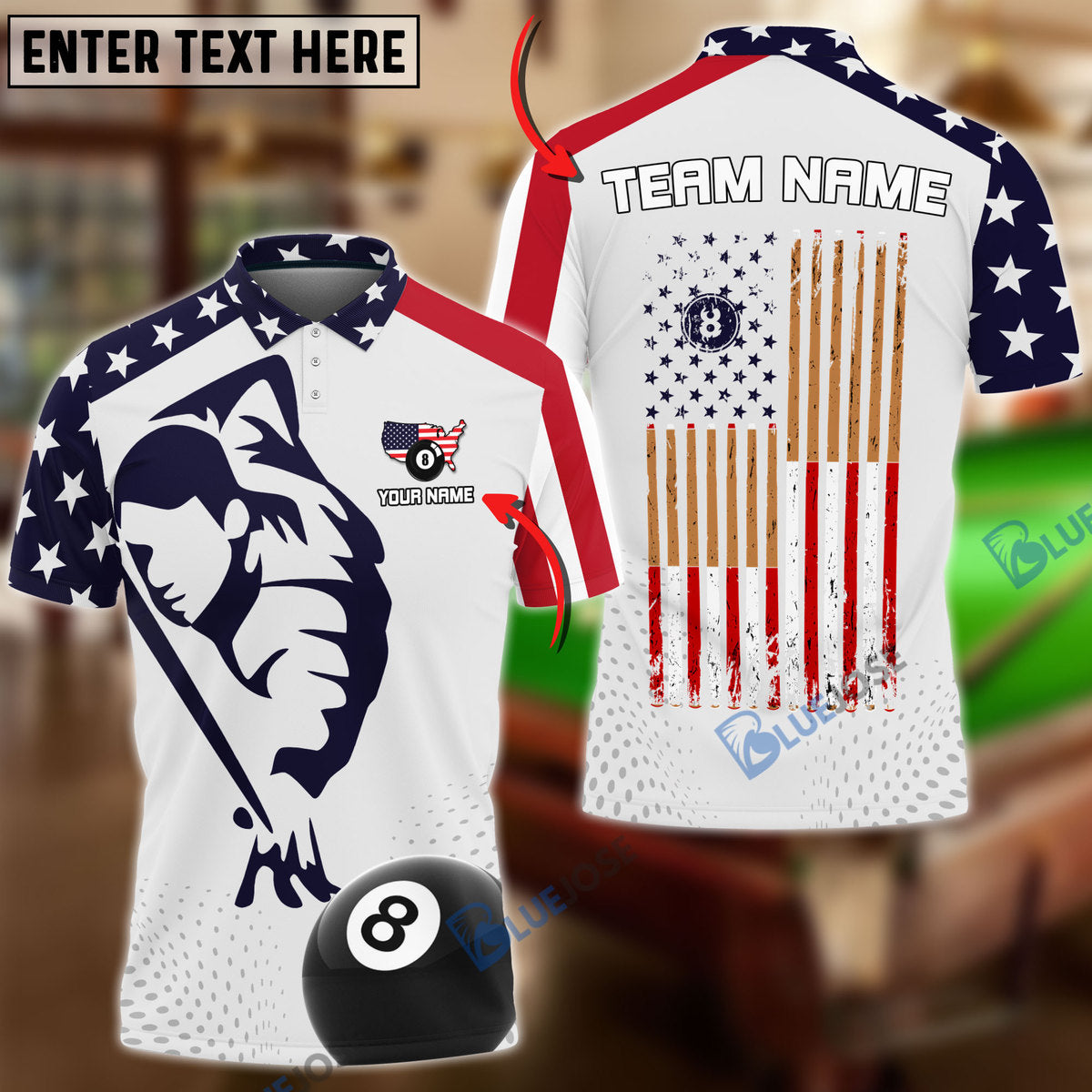 BlueJose Billiards American Ball 8 Style Personalized Name, Team Name Shirt