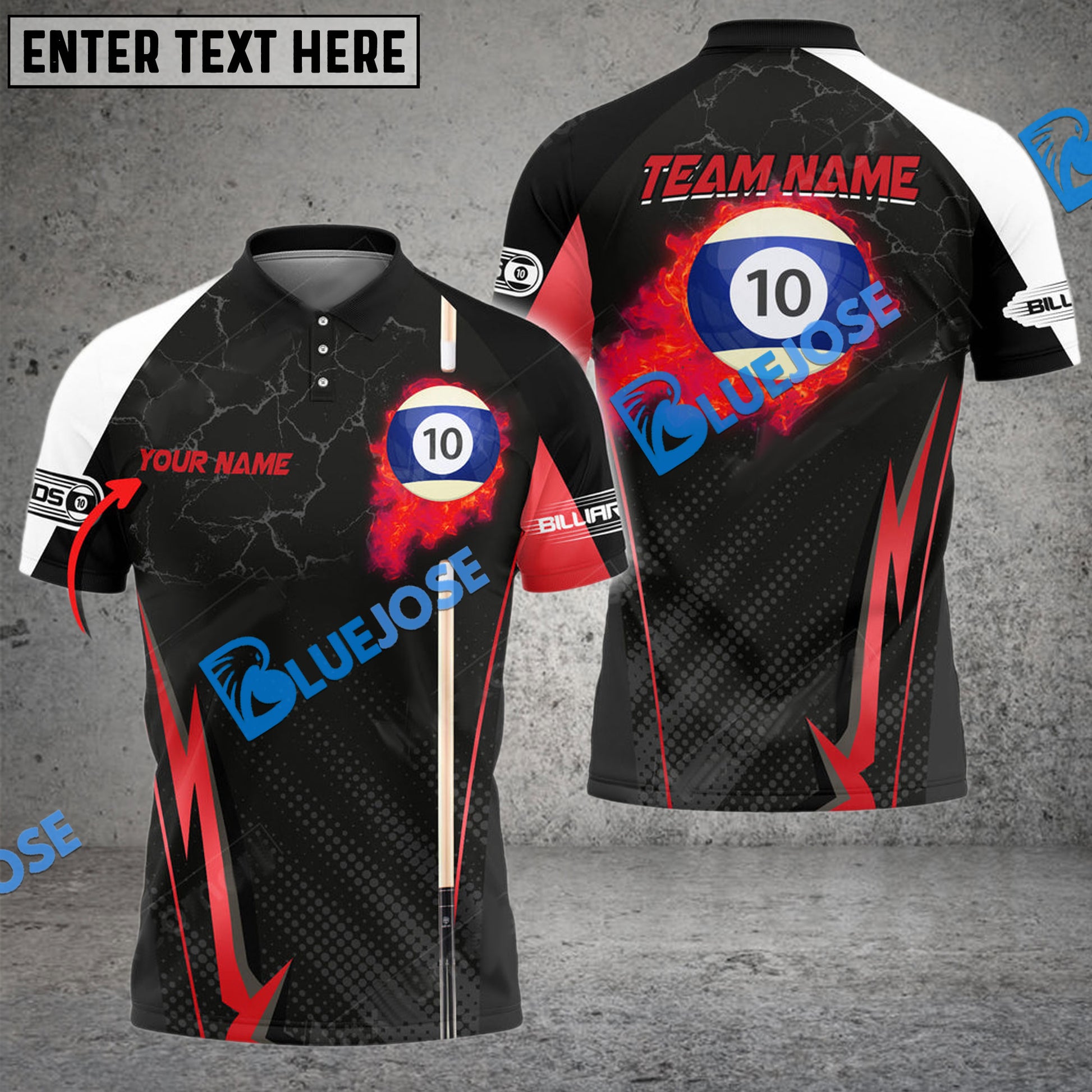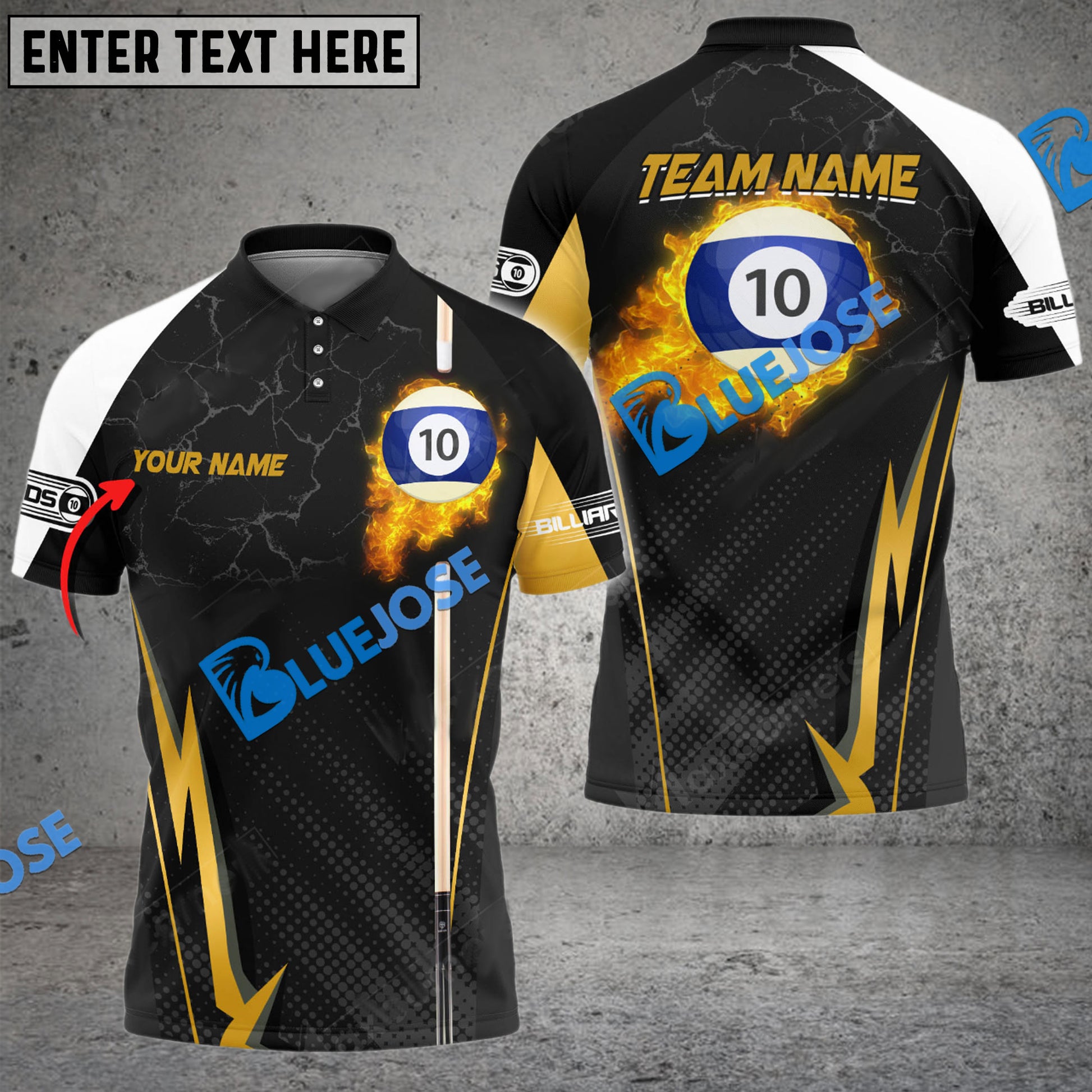BlueJose Billiards Ball 10 Fire Cue Personalized Name, Team Name Unisex Shirt ( 4 Colors )