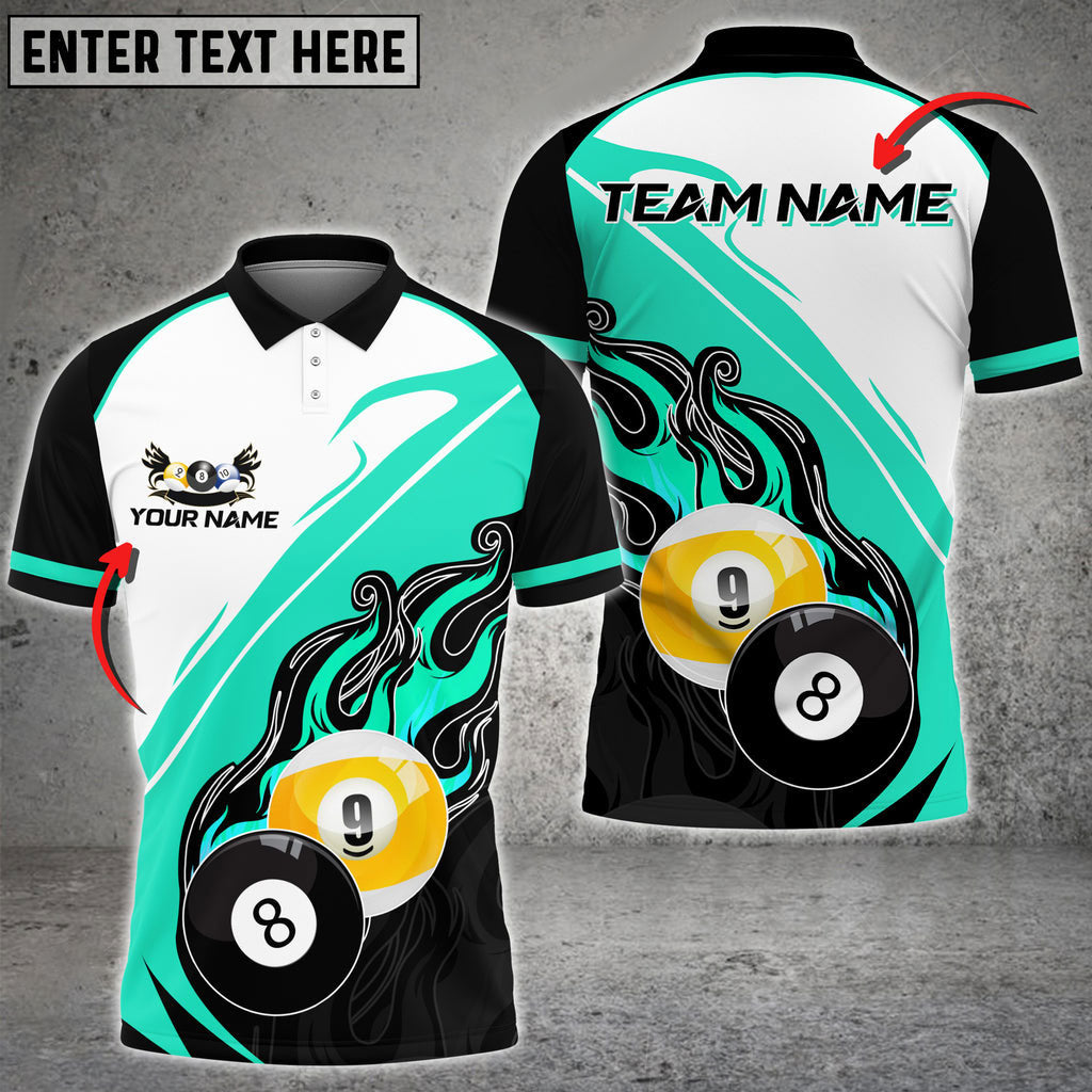 BlueJose Billiards Ball 8,9 Blazing Fire Personalized Name, Team Name Unisex Shirt ( 6 Colors )