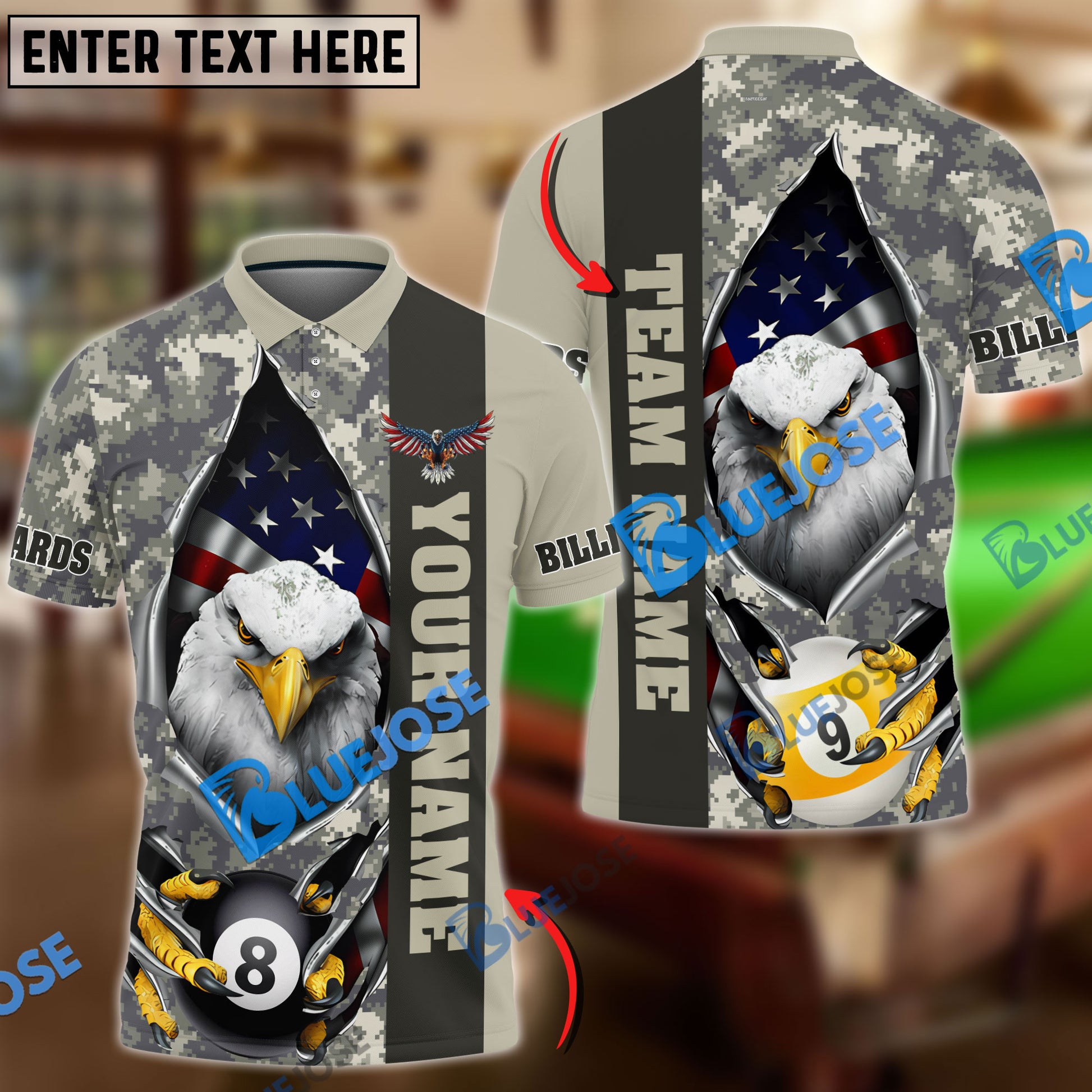 BlueJose Billiards Ball 8 And 9 American Eagle Camo Personalized Name, Team Name Unisex Shirt ( 4 Colors )