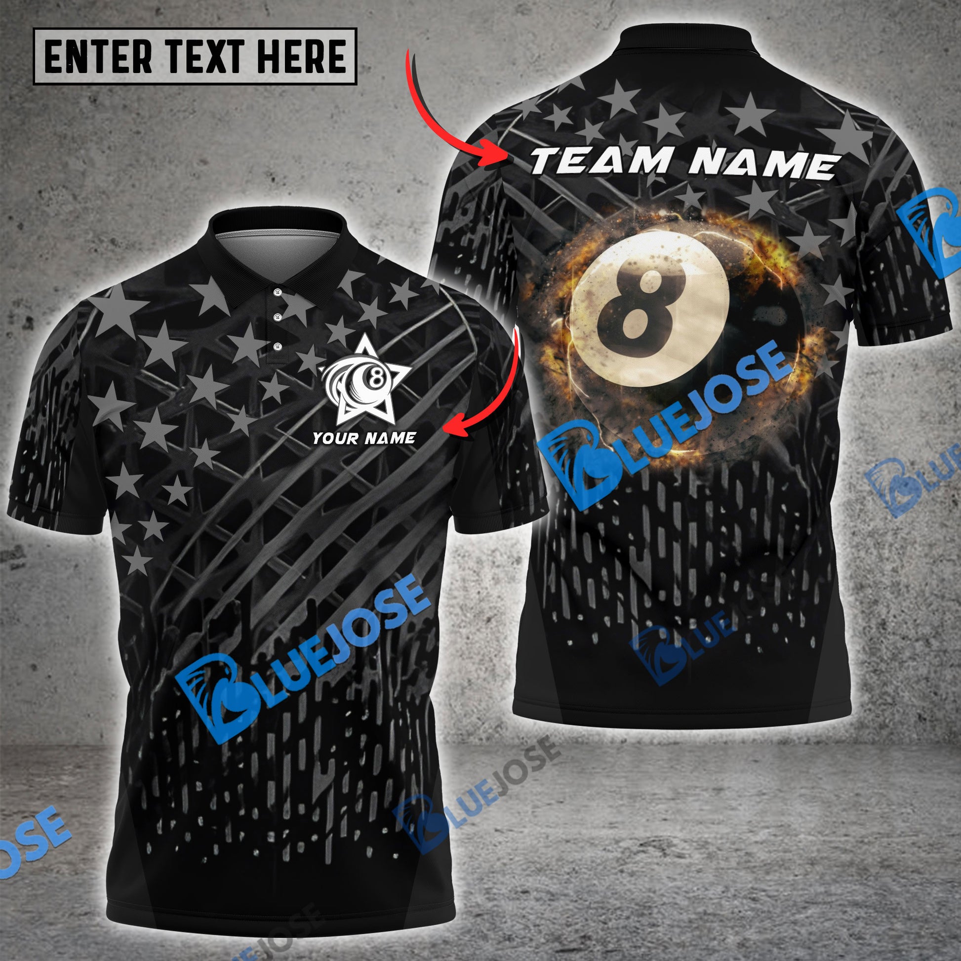 BlueJose Billiards Ball 8 And 9 Fire Black US Flag Personalized Name, Team Name Unisex Shirt ( 2 Colors )