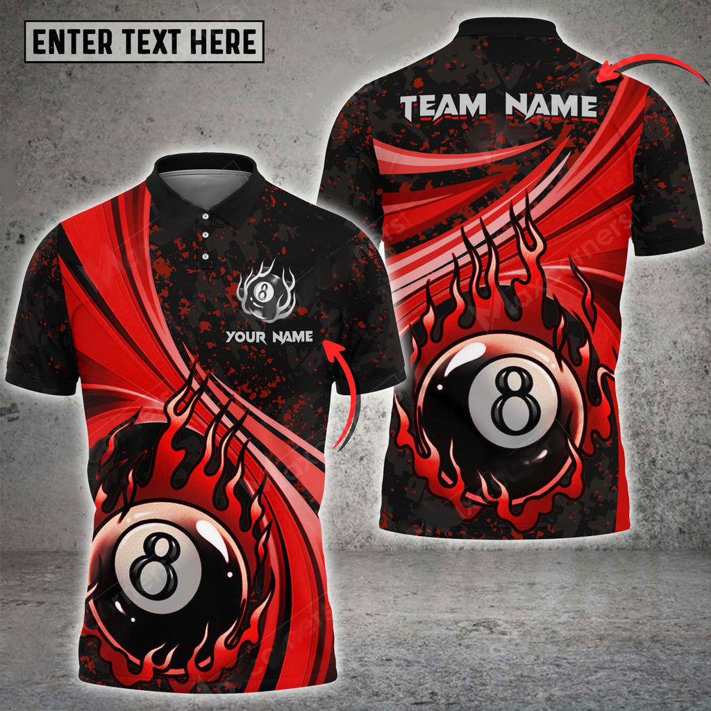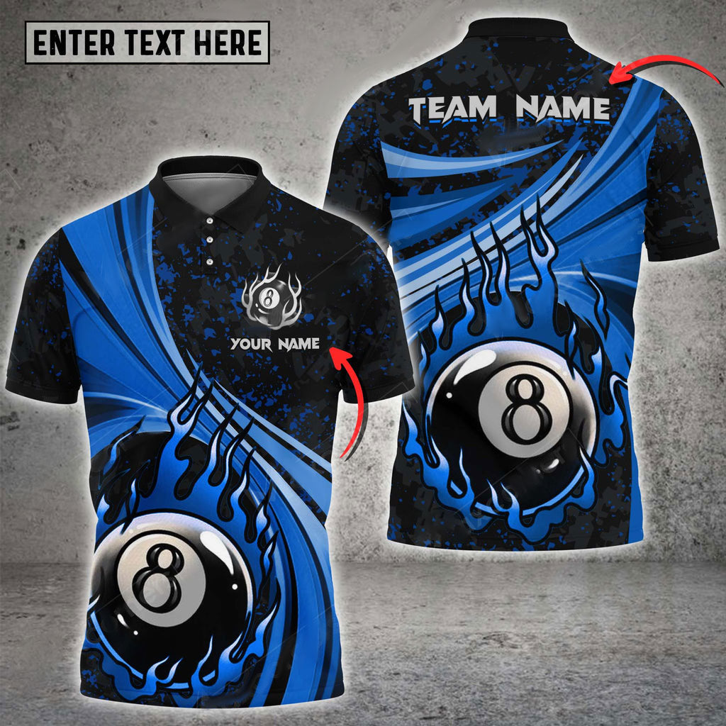 BlueJose Billiards Ball 8 Animated Fire Personalized Name, Team Name Unisex Shirt ( 4 Colors )