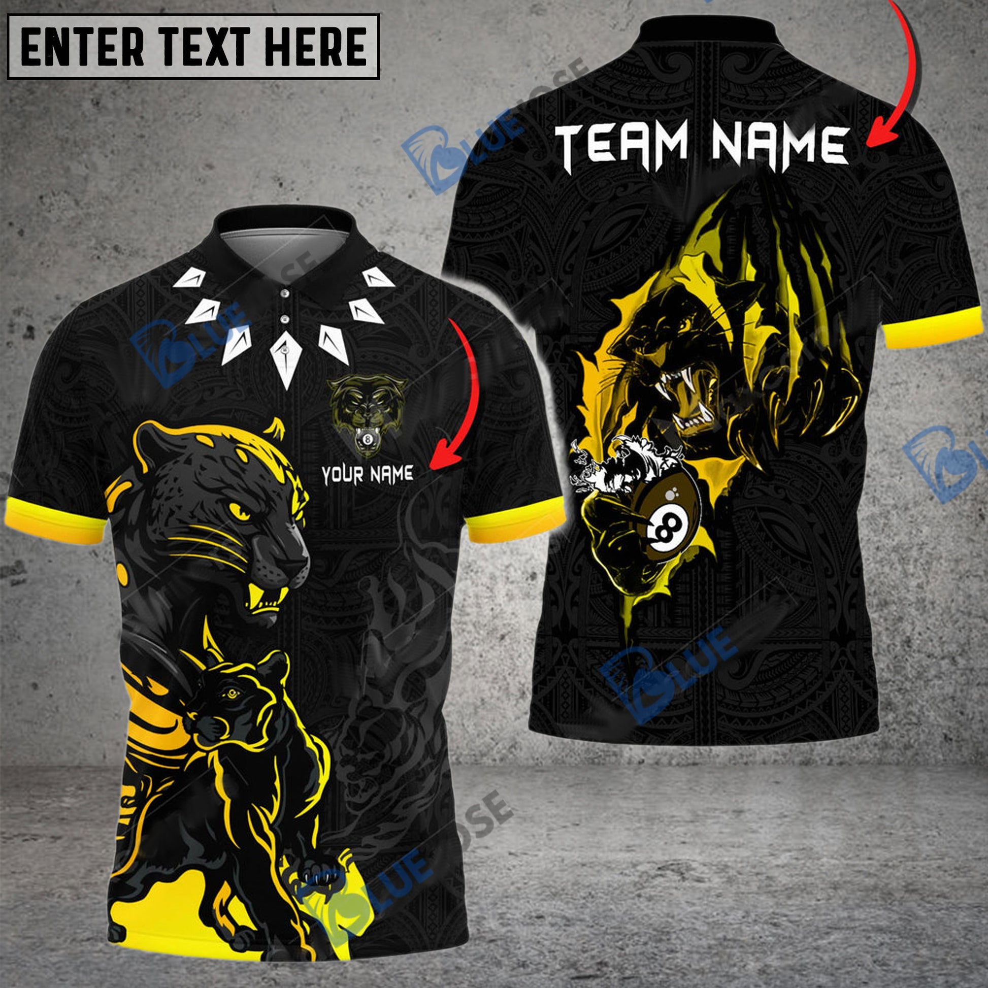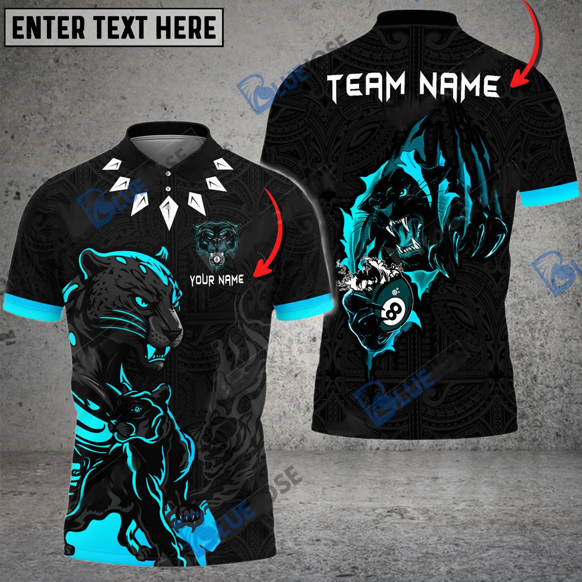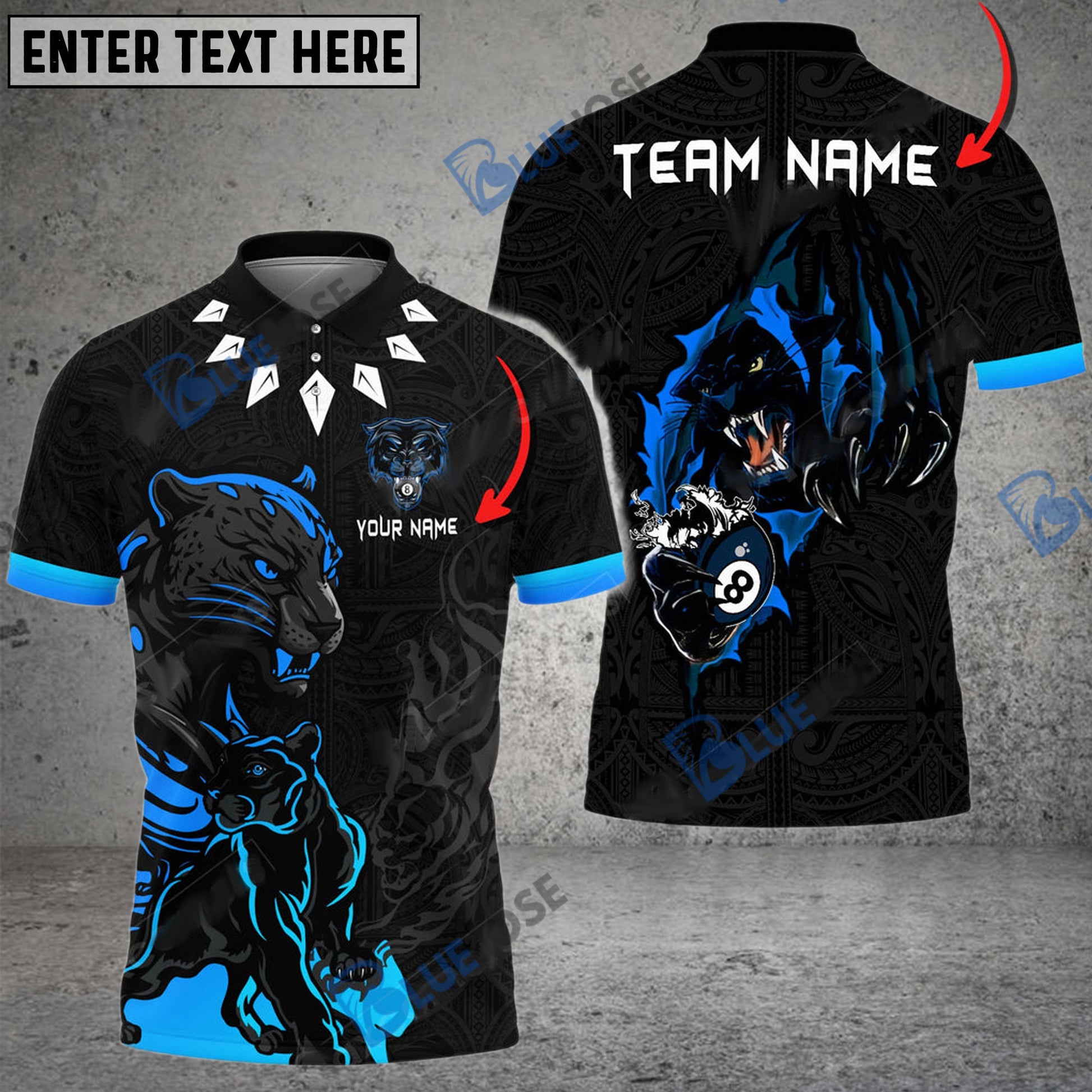 BlueJose Billiards Ball 8 Black Panther Personalized Name, Team Name Unisex Shirt ( 6 Colors )