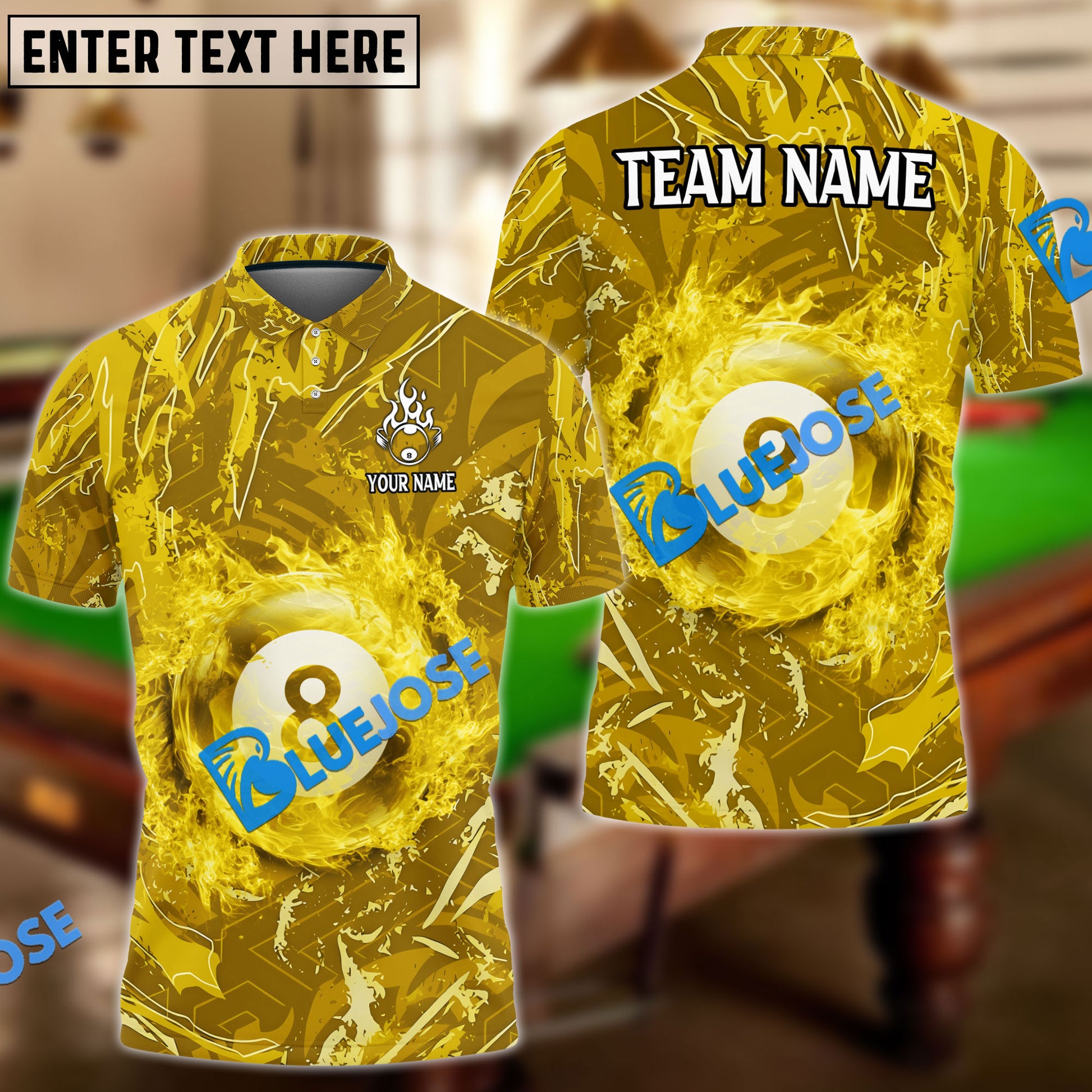 BlueJose Billiards Ball 8 Blazing Sun Personalized Name, Team Name Unisex Shirt ( 4 Colors )