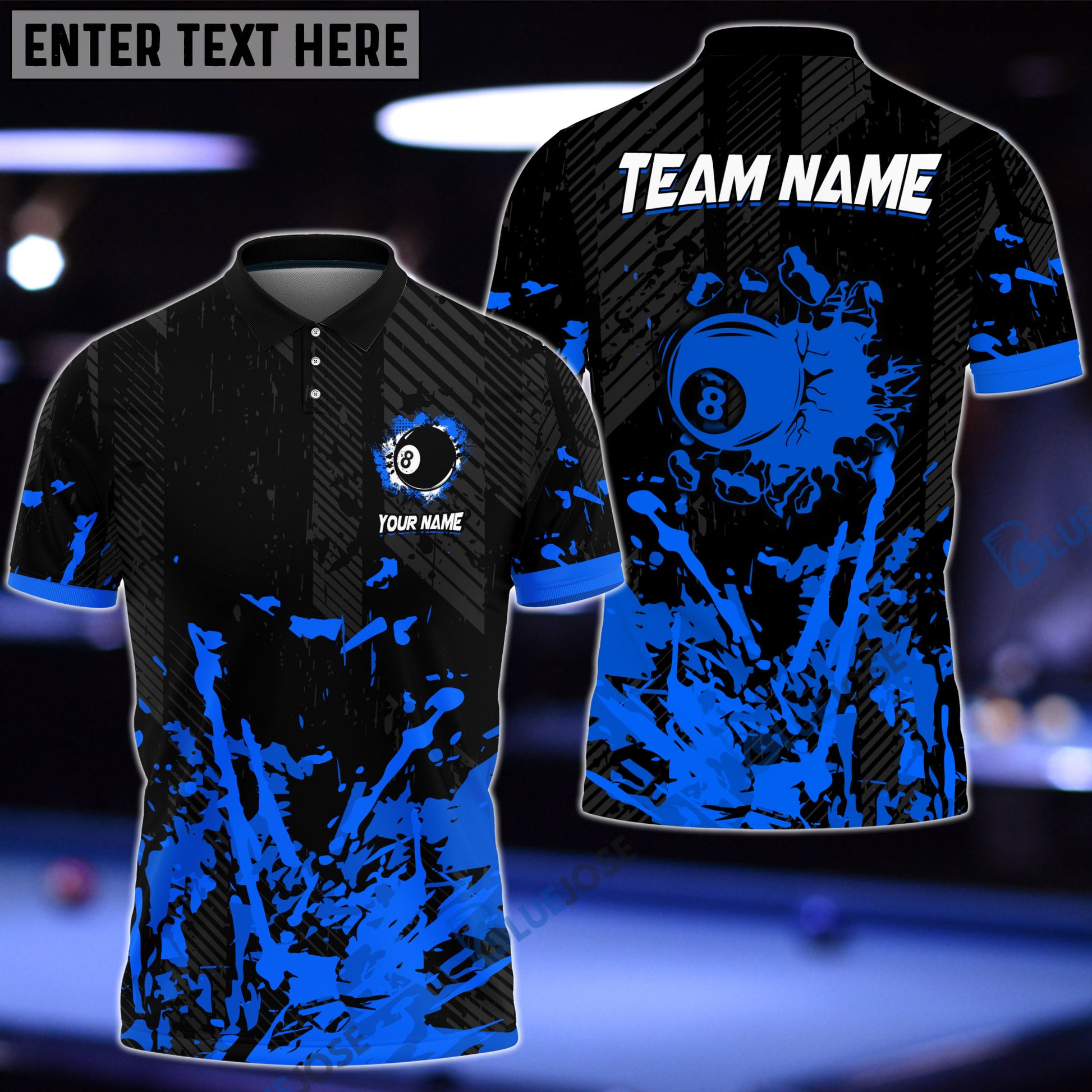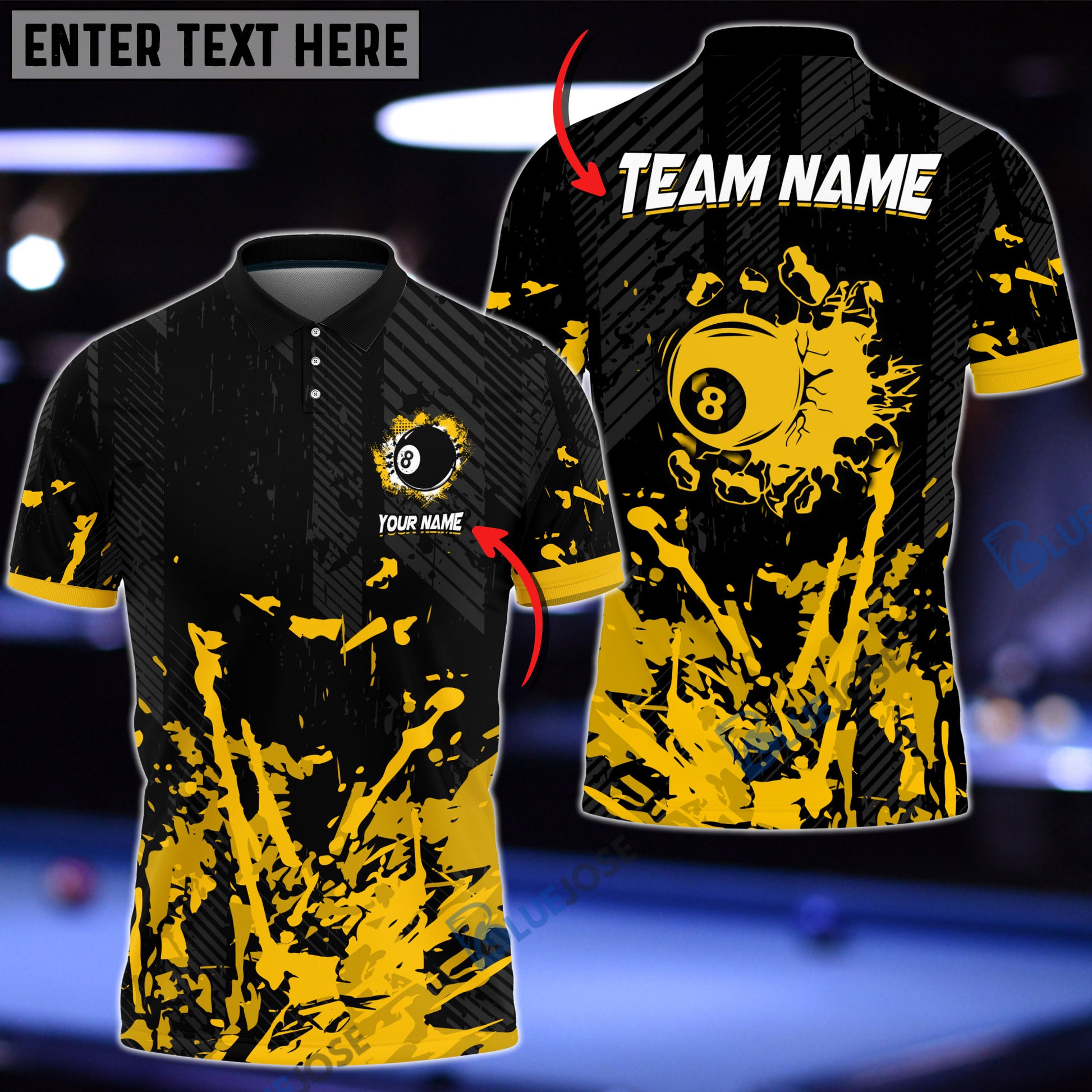 BlueJose Billiards Ball 8 Breaking Paint Personalized Name, Team Name Unisex Shirt