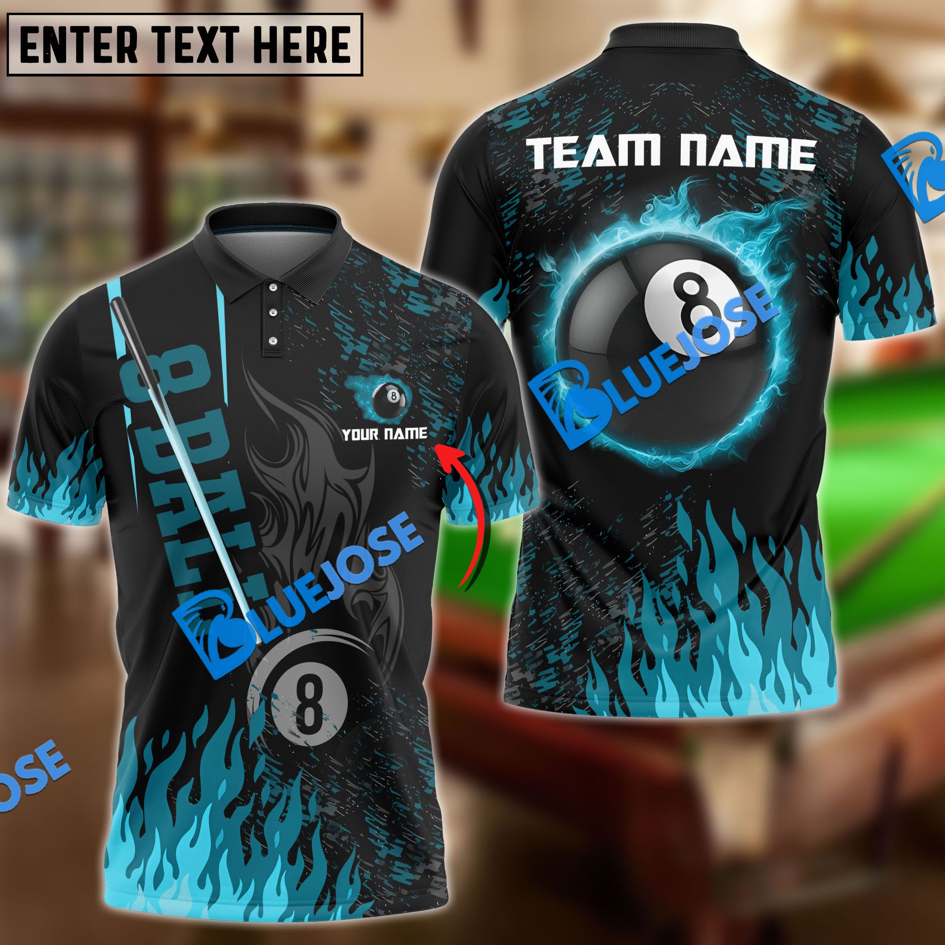 BlueJose Billiards Ball 8 Burning Room Personalized Name, Team Name Unisex Shirt ( 4 Colors )