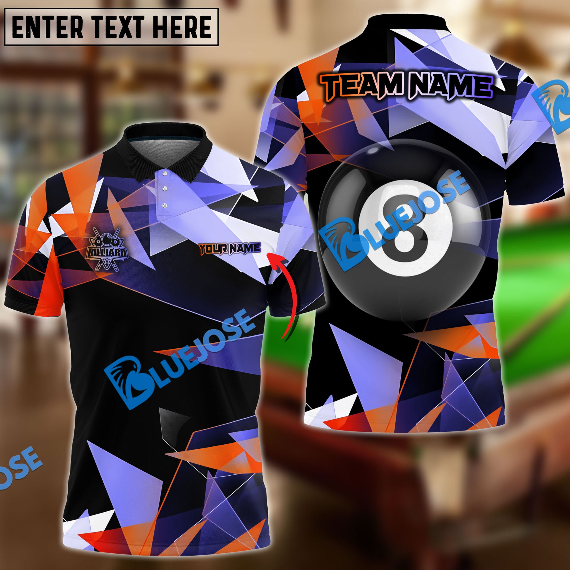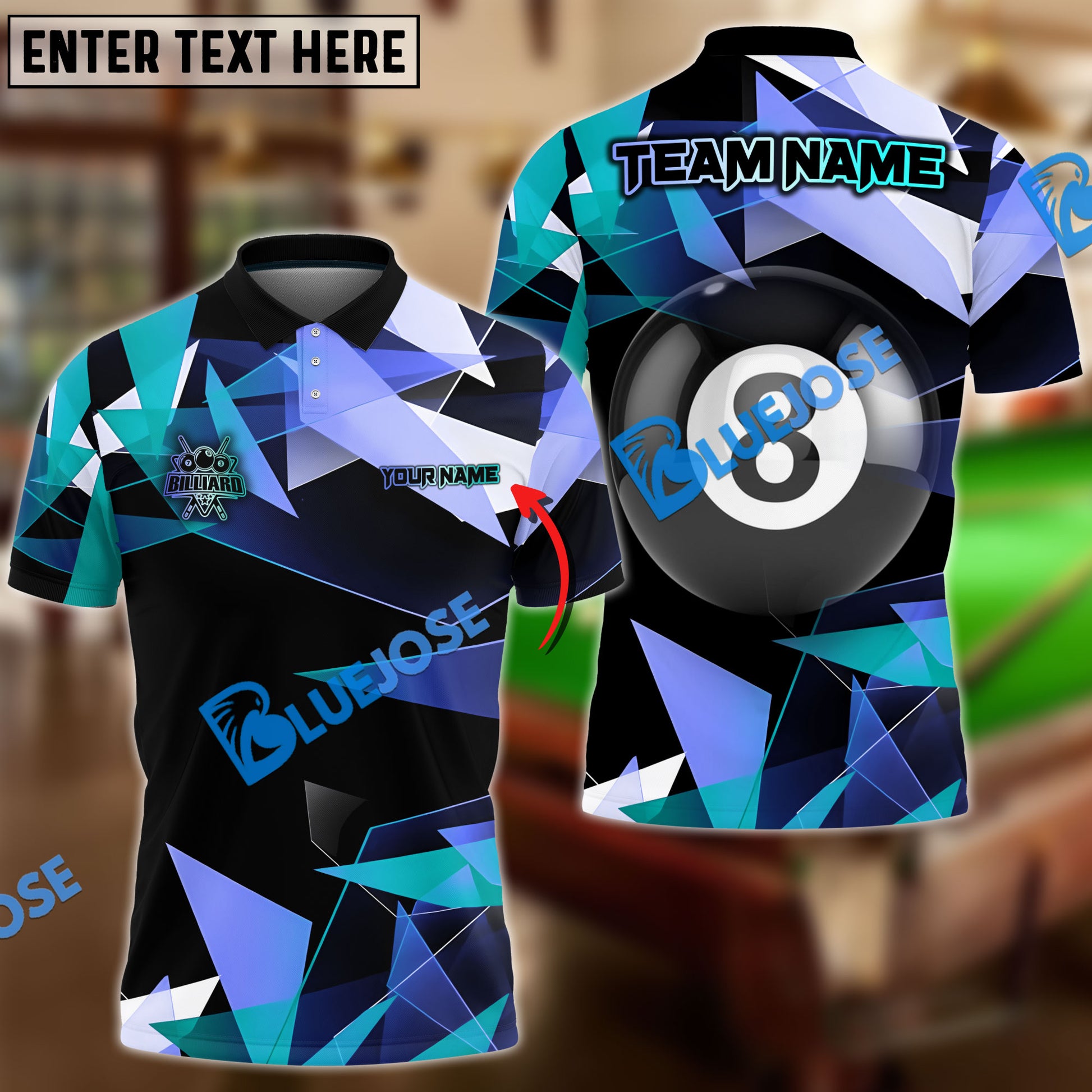 BlueJose Billiards Ball 8 Colorful Glass Personalized Name, Team Name Unisex Shirt ( 4 Colors )