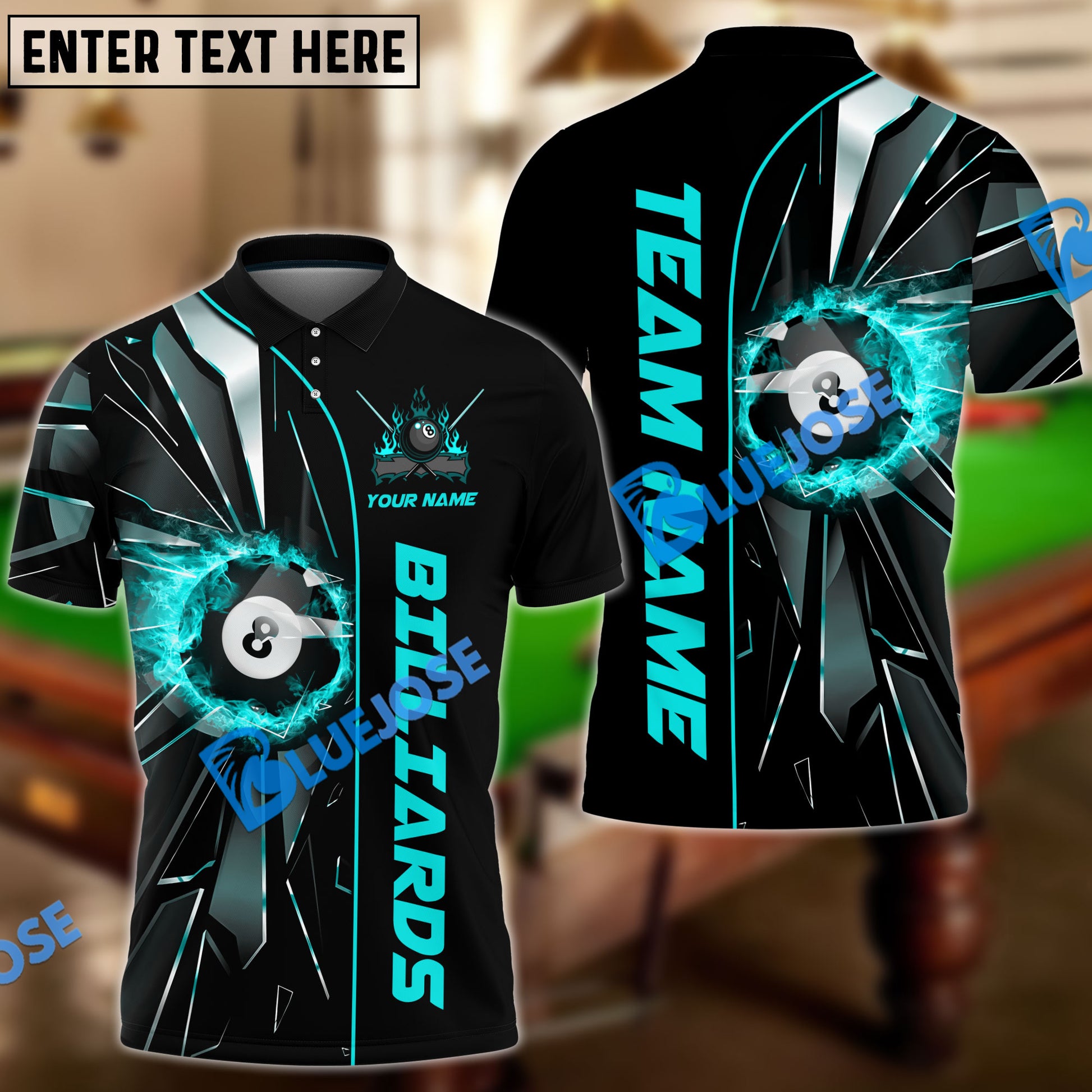 BlueJose Billiards Ball 8 Fire Broken Glass Personalized Name, Team Name Unisex Shirt ( 4 Colors )