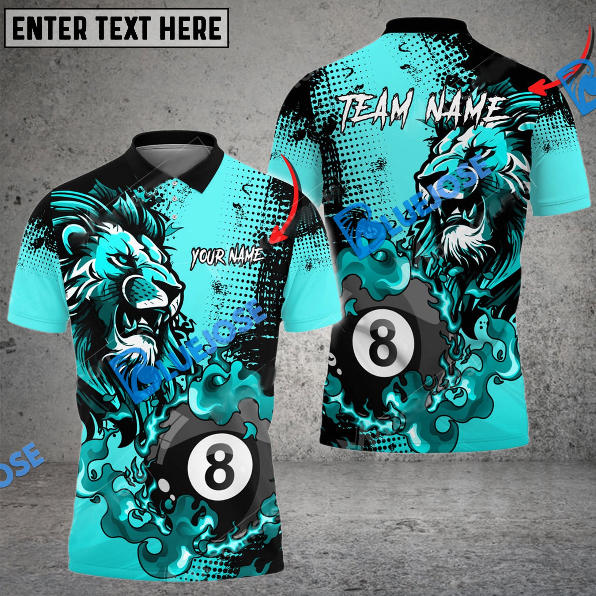 BlueJose Billiards Ball 8 Fire Lion King Personalized Name, Team Name Unisex Shirt ( 6 Colors )