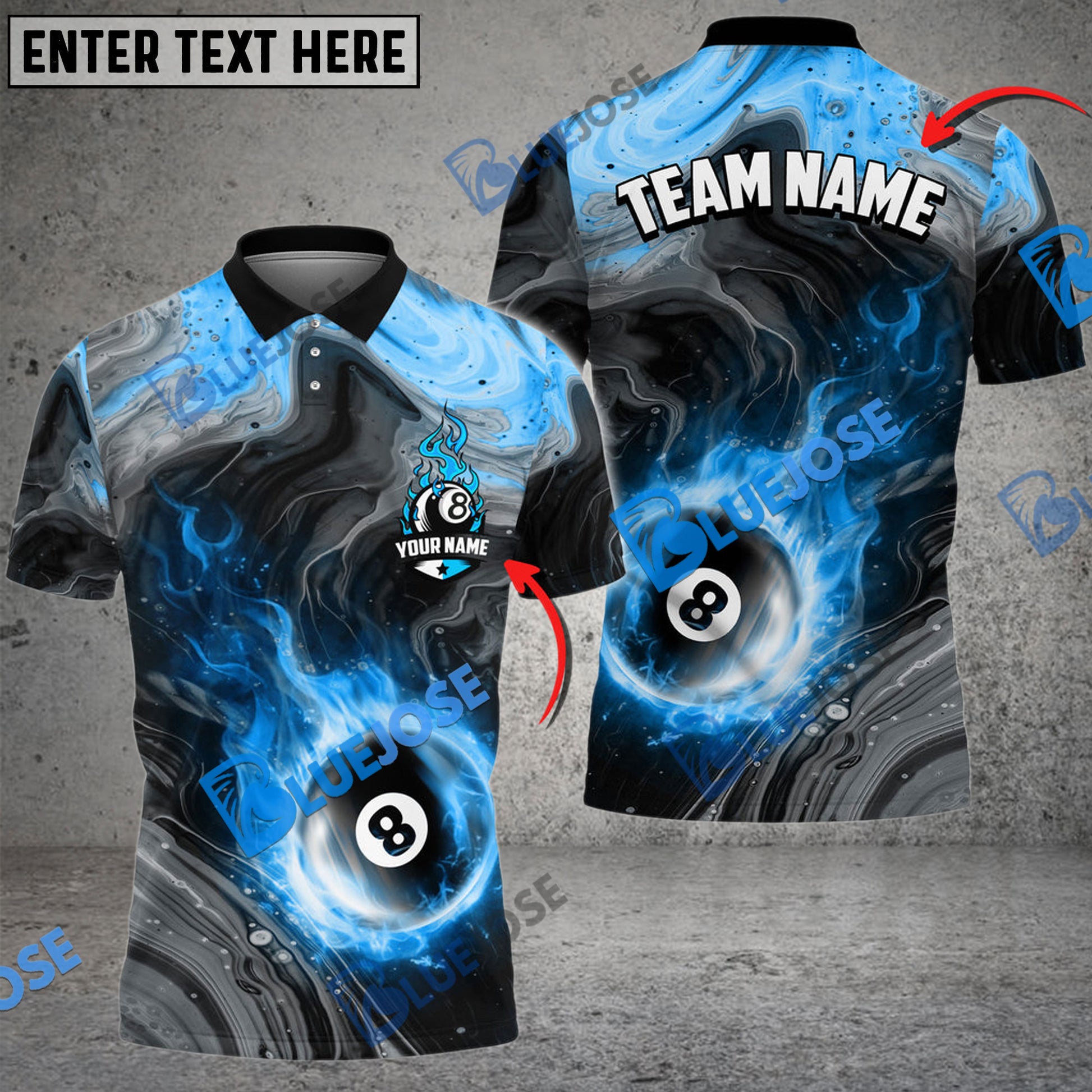 BlueJose Billiards Ball 8 Fire Paint Flow Personalized Name, Team Name Unisex Shirt ( 6 Colors )