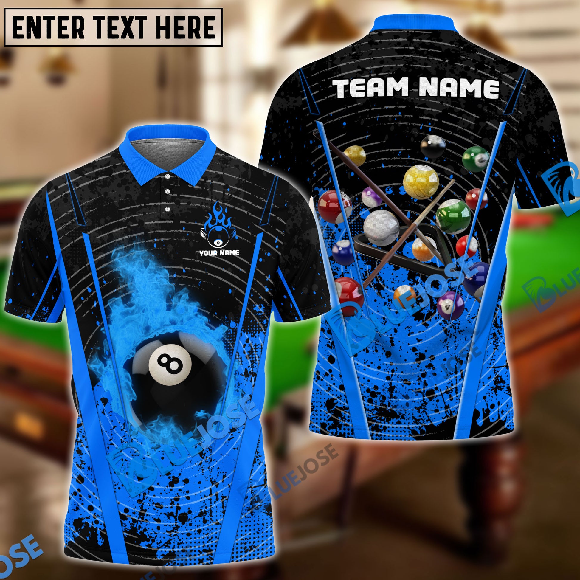 BlueJose Billiards Ball 8 Flame Paint Personalized Name, Team Name Unisex Shirt ( 6 Colors )