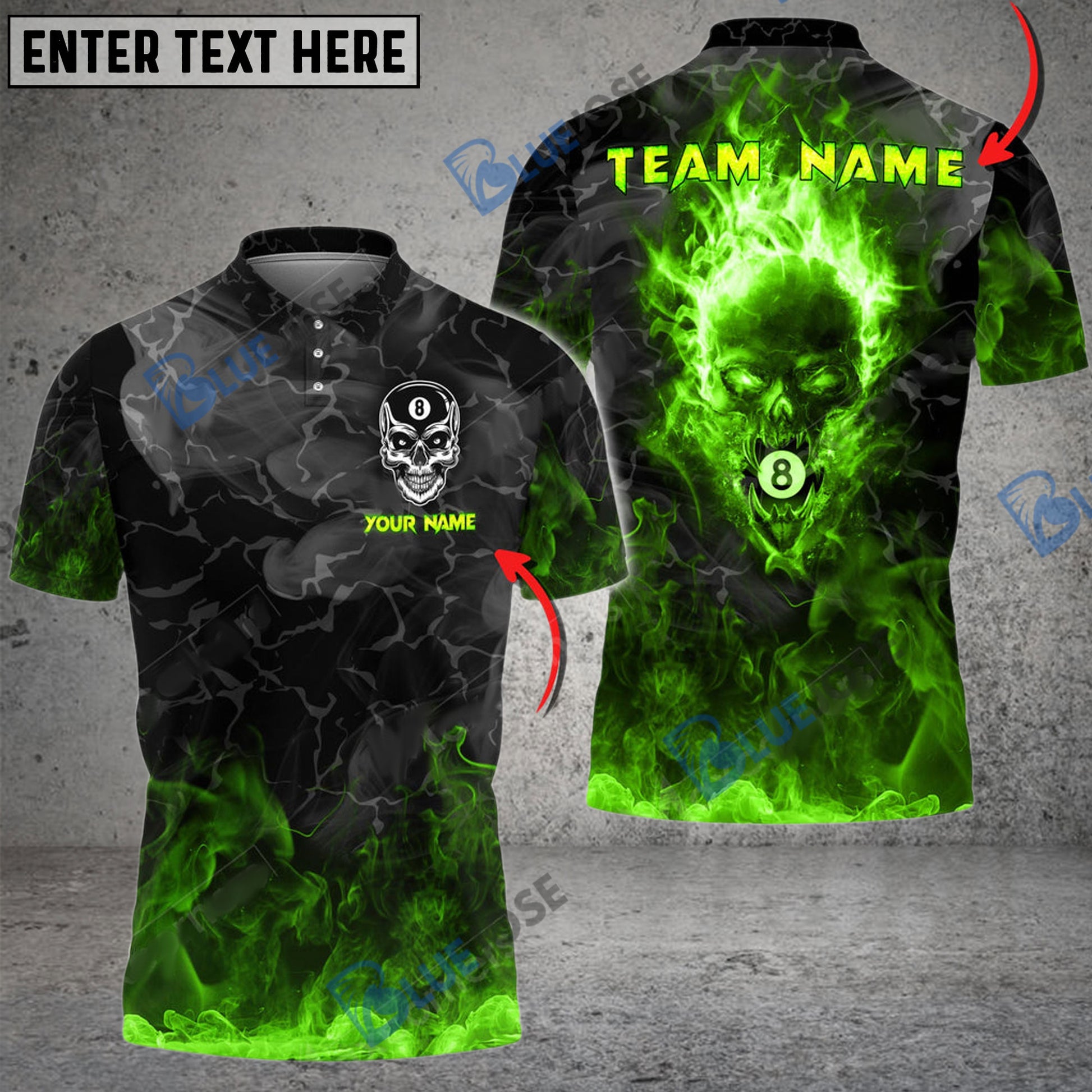BlueJose Billiards Ball 8 Flame Skull From Hell Personalized Name, Team Name Unisex Shirt ( 4 Colors )