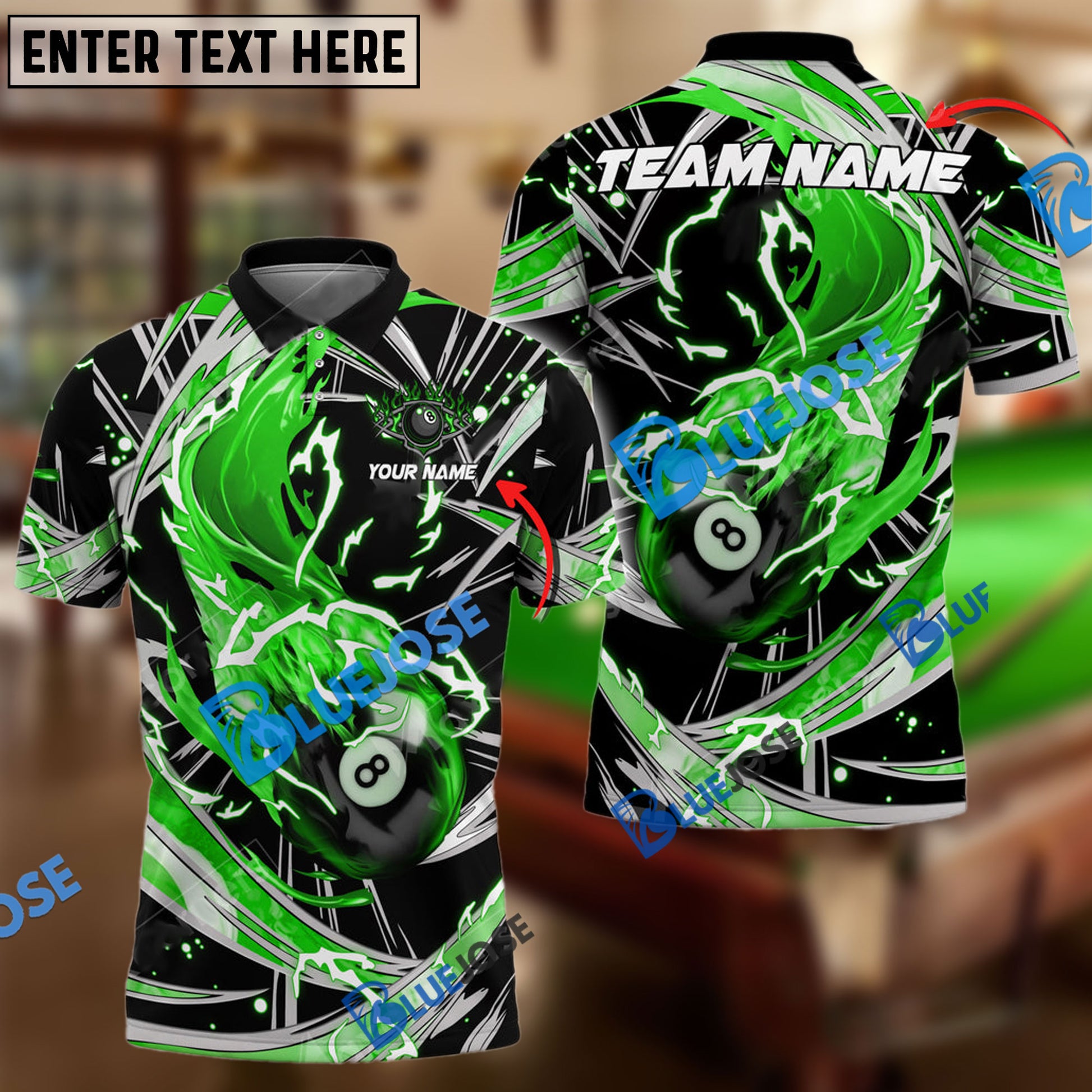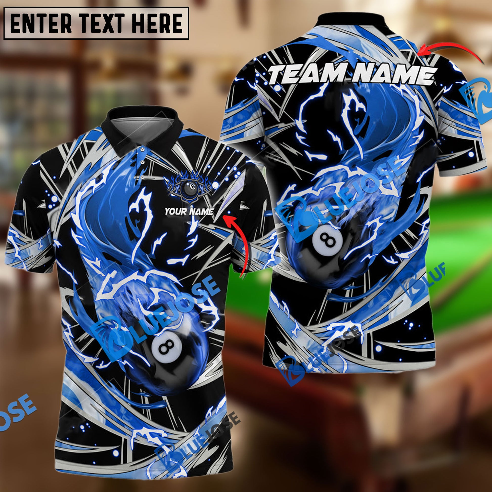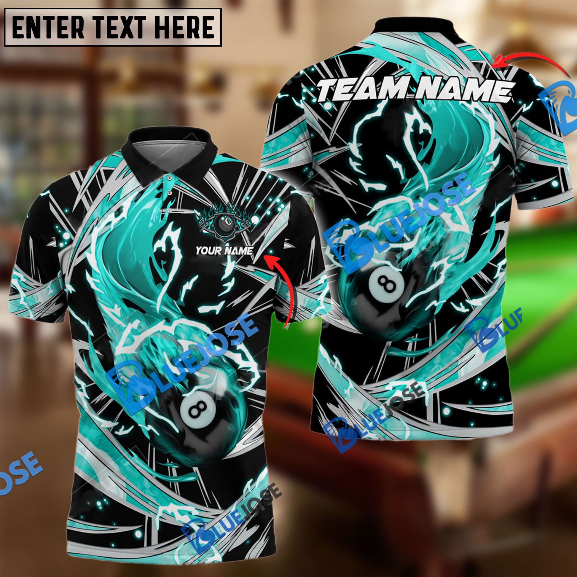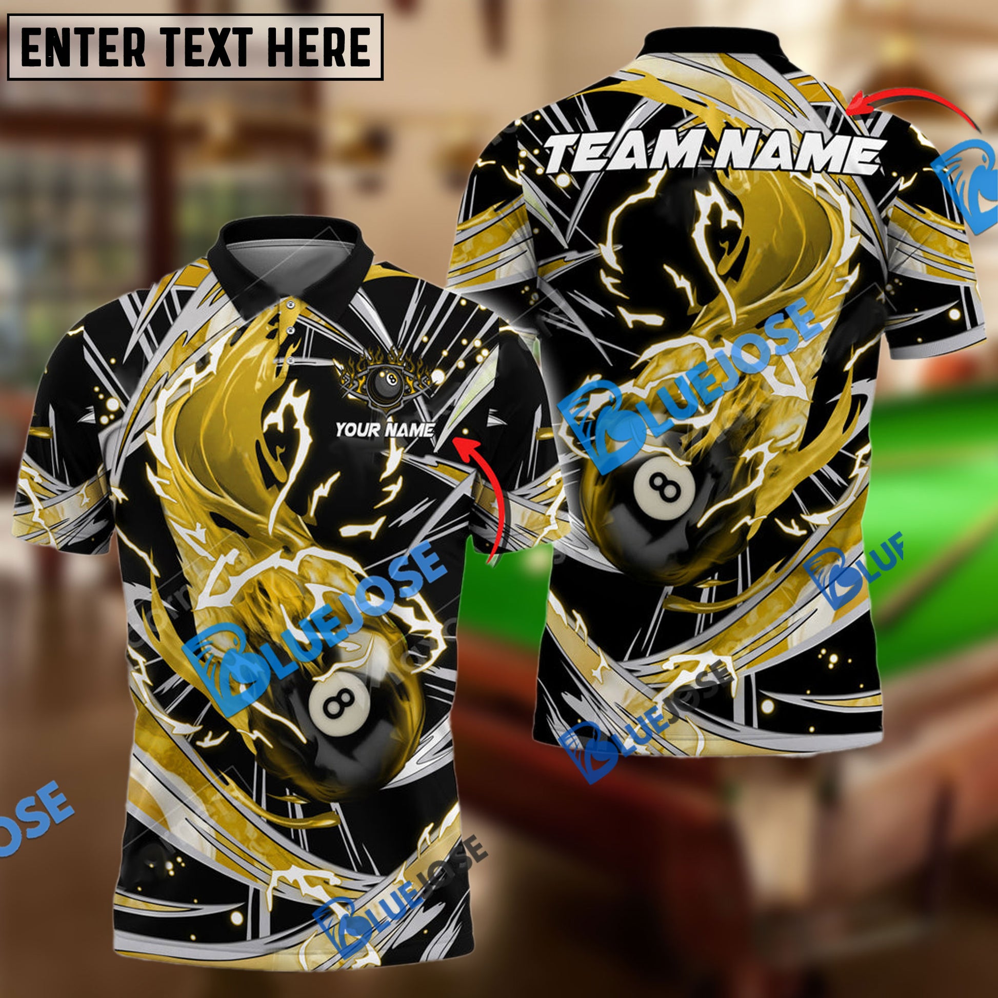 BlueJose Billiards Ball 8 Flame Thunder Wind Aura Personalized Name, Team Name Unisex Shirt ( 6 Colors )