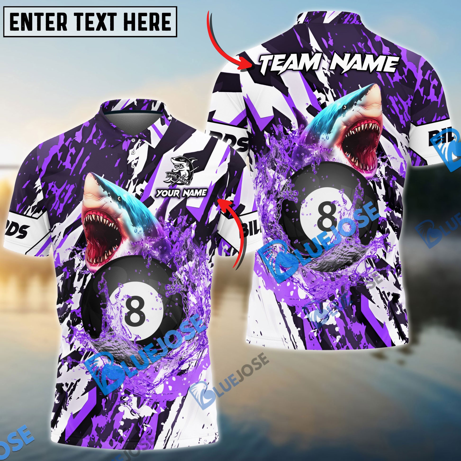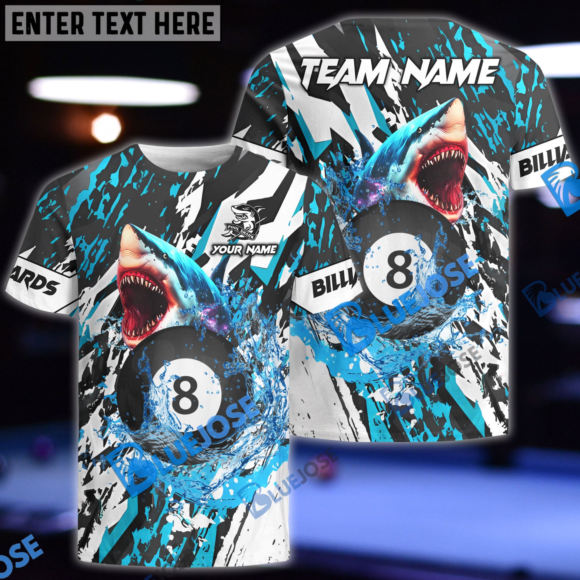 BlueJose Billiards Ball 8 Grunge Shark Personalized Name, Team Name Unisex Shirt ( 4 Colors )