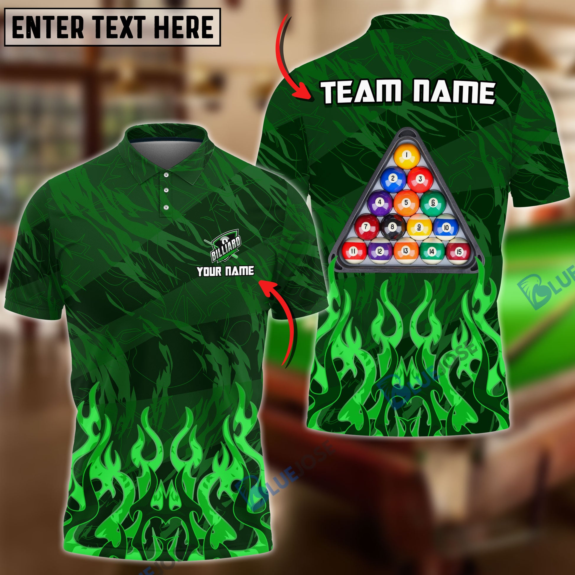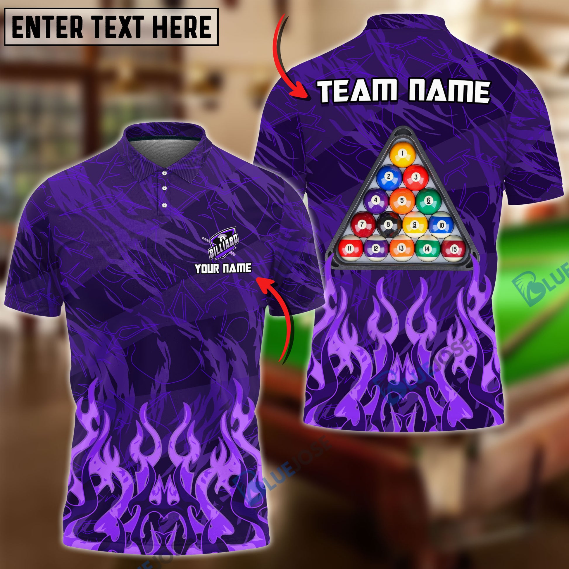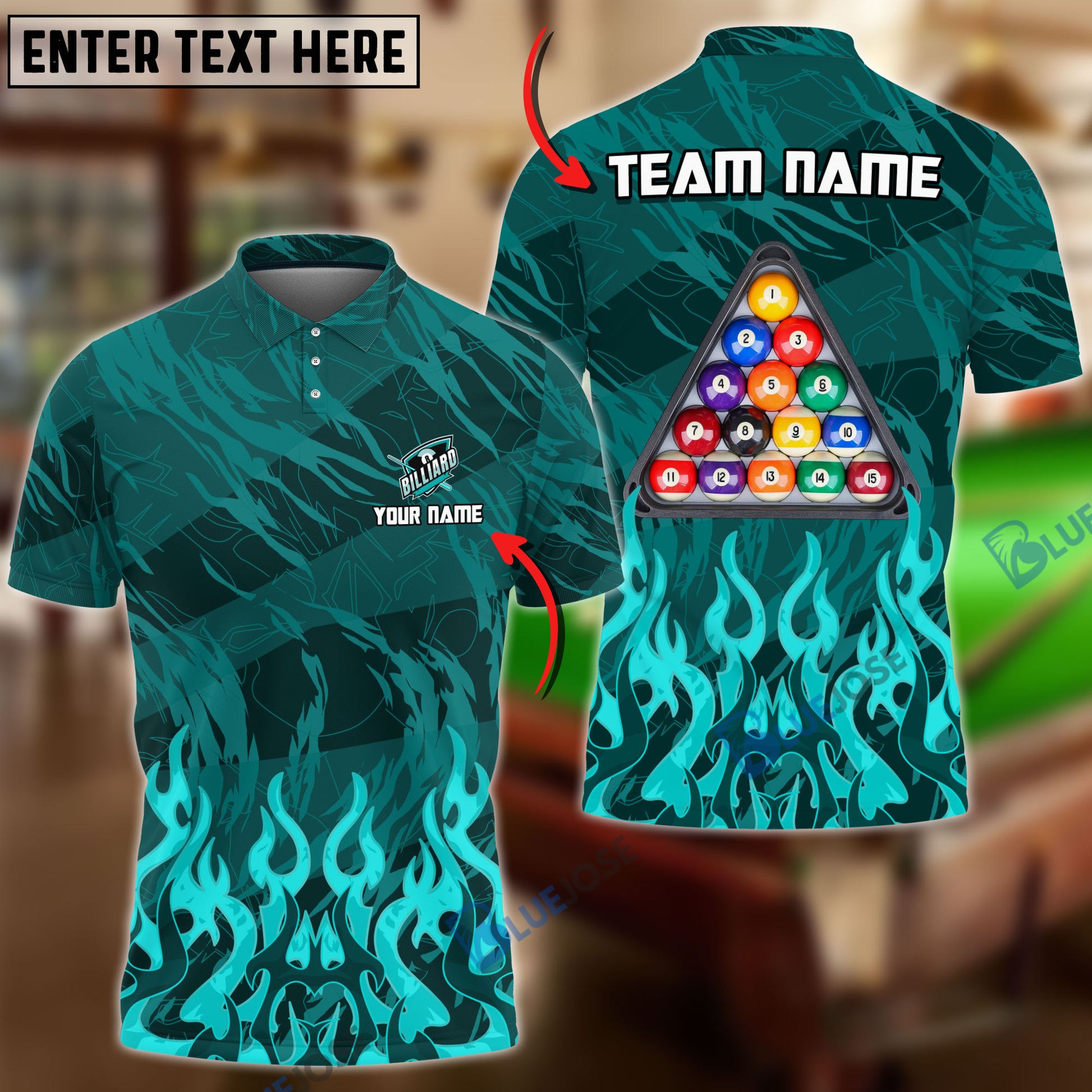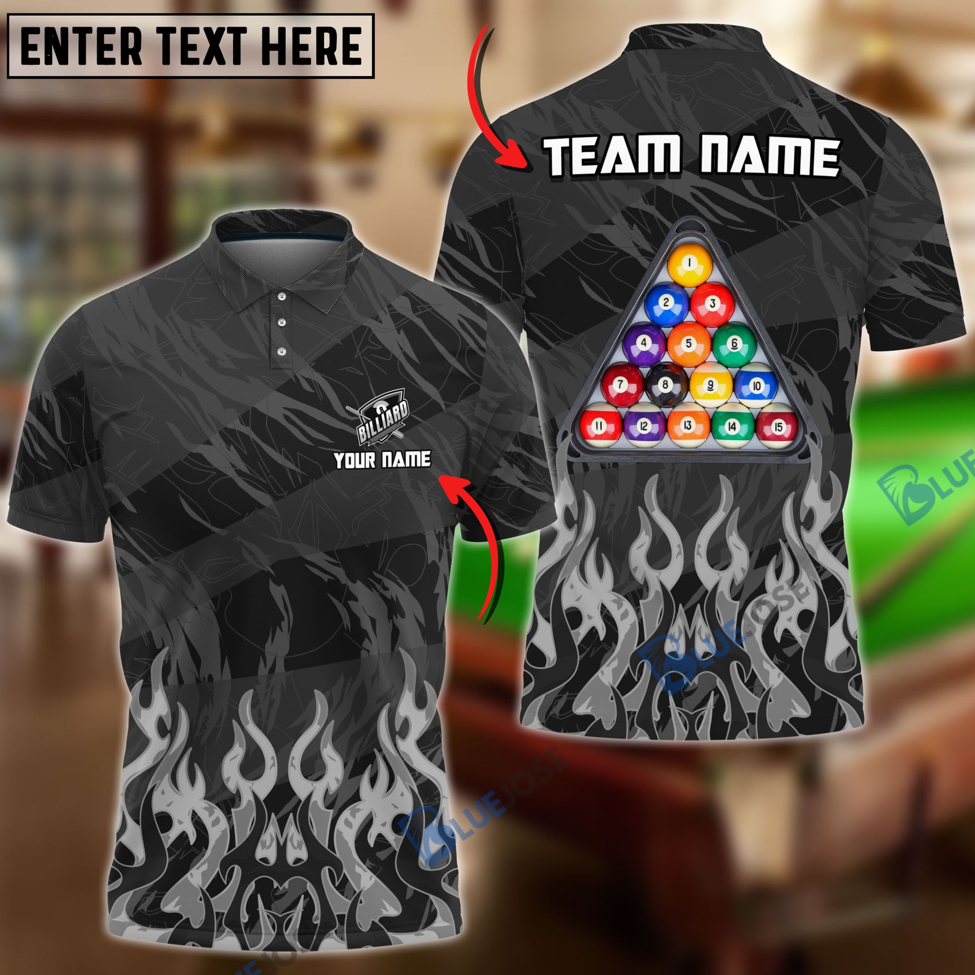 BlueJose Billiards Ball 8 Inner Flame Personalized Name, Team Name Unisex Shirt ( 6 Colors )