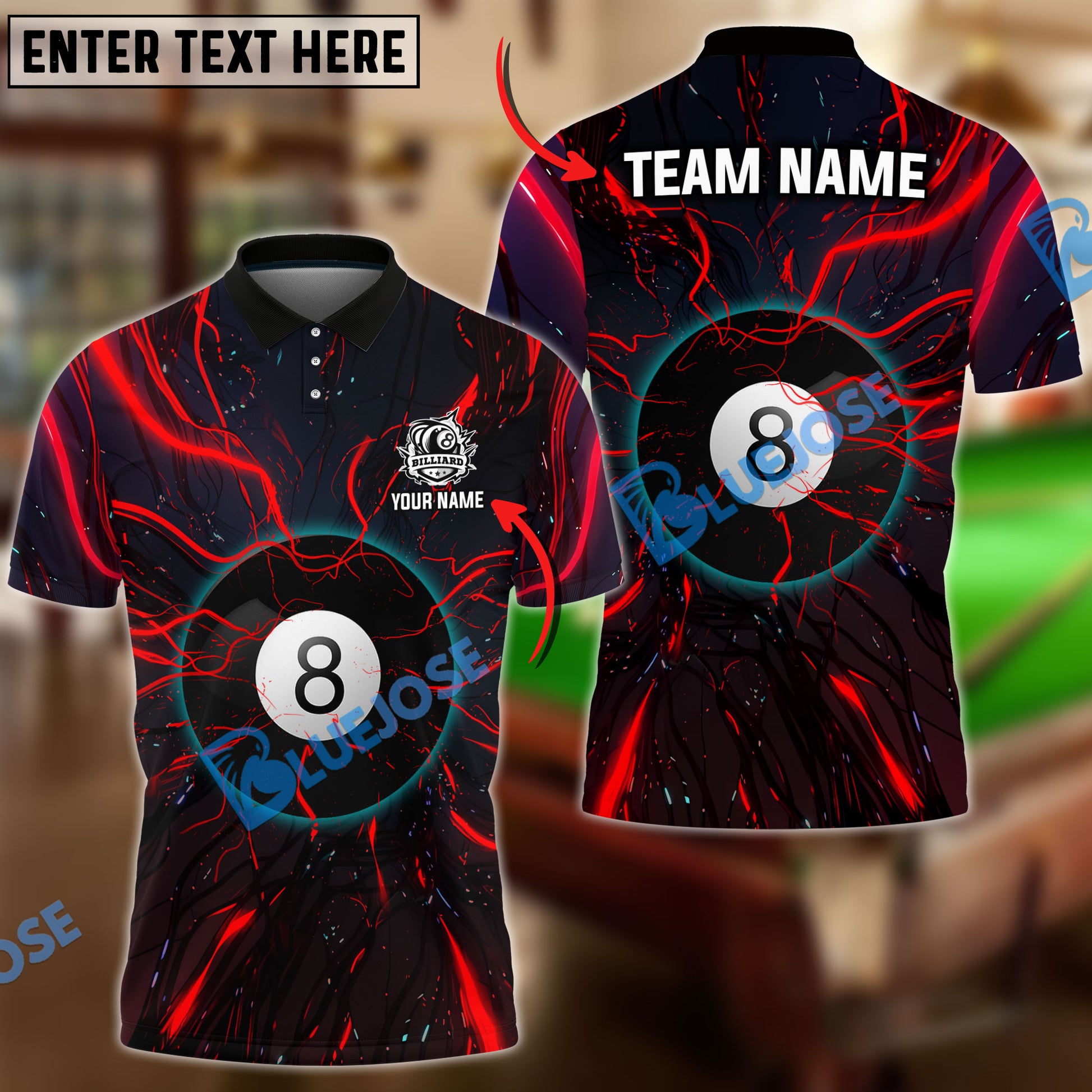 BlueJose Billiards Ball 8 Abstract Tentacle Personalized Name, Team Name Unisex Shirt ( 4 Colors )