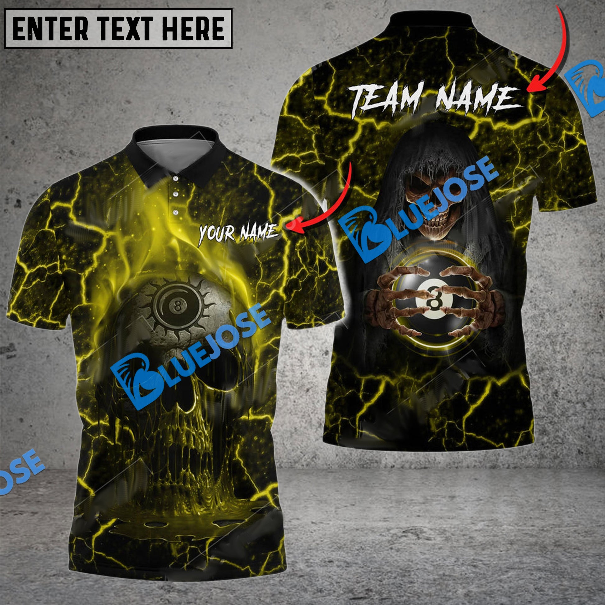 BlueJose Billiards Ball 8 Skull Magic Flame Personalized Name, Team Name Unisex Shirt ( 4 Colors )