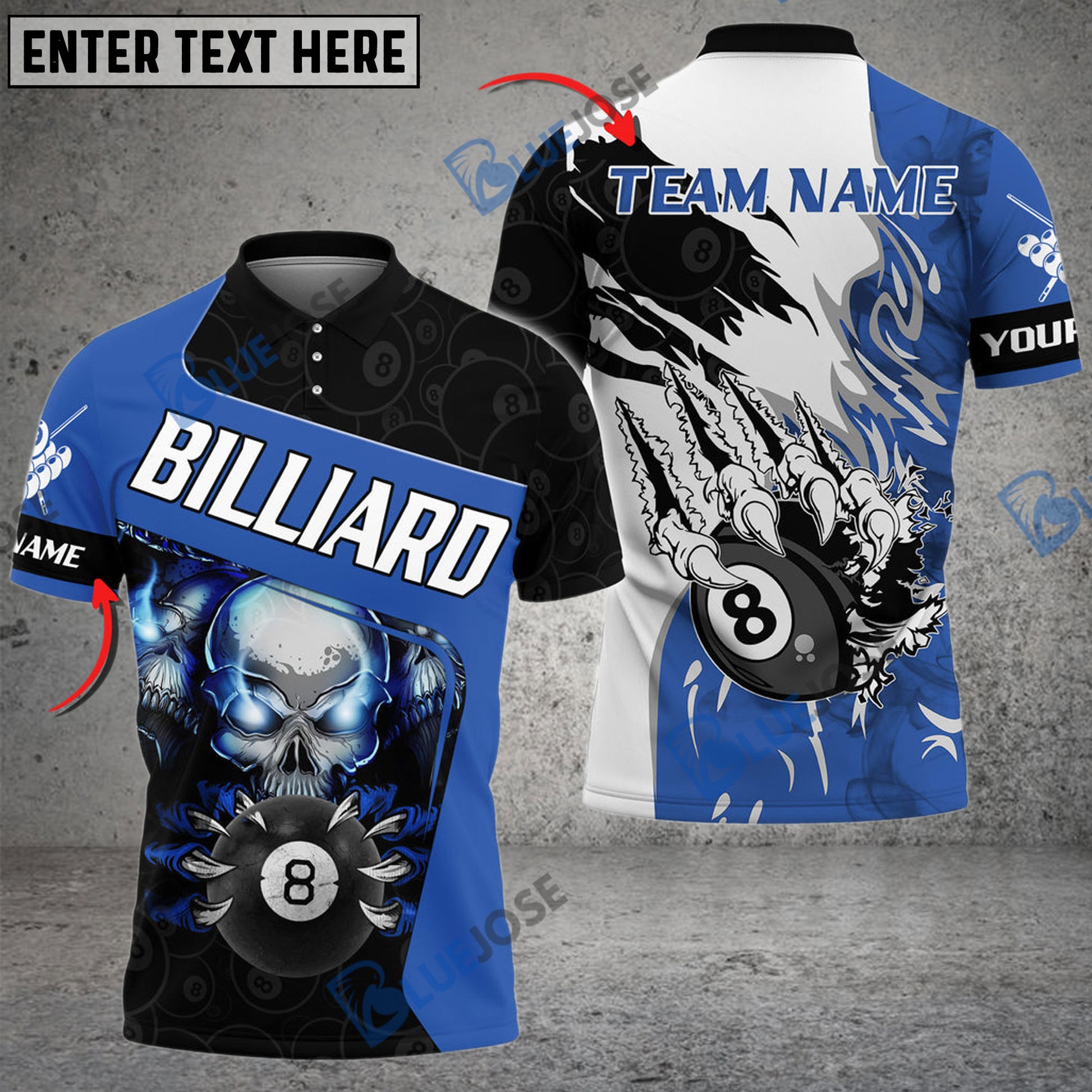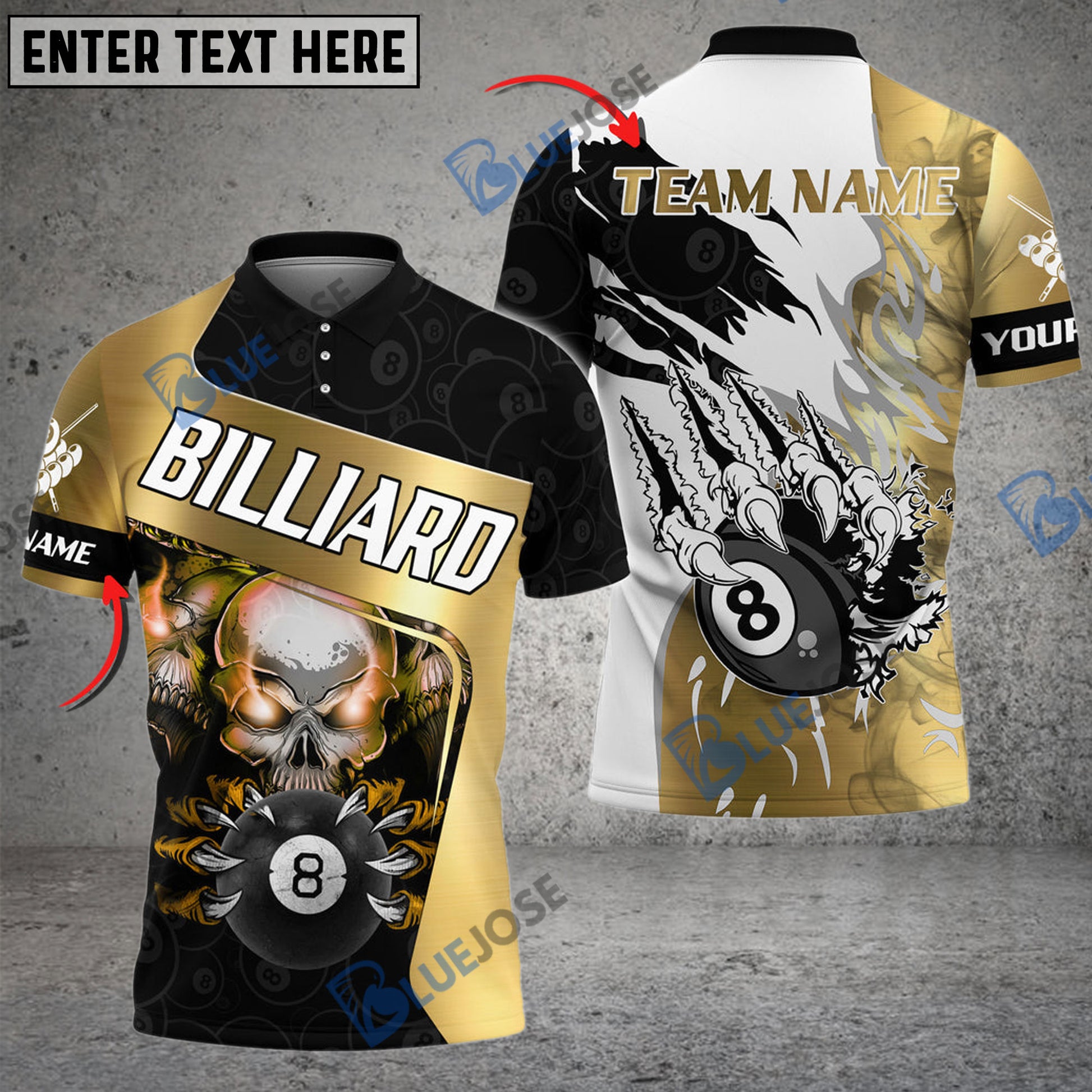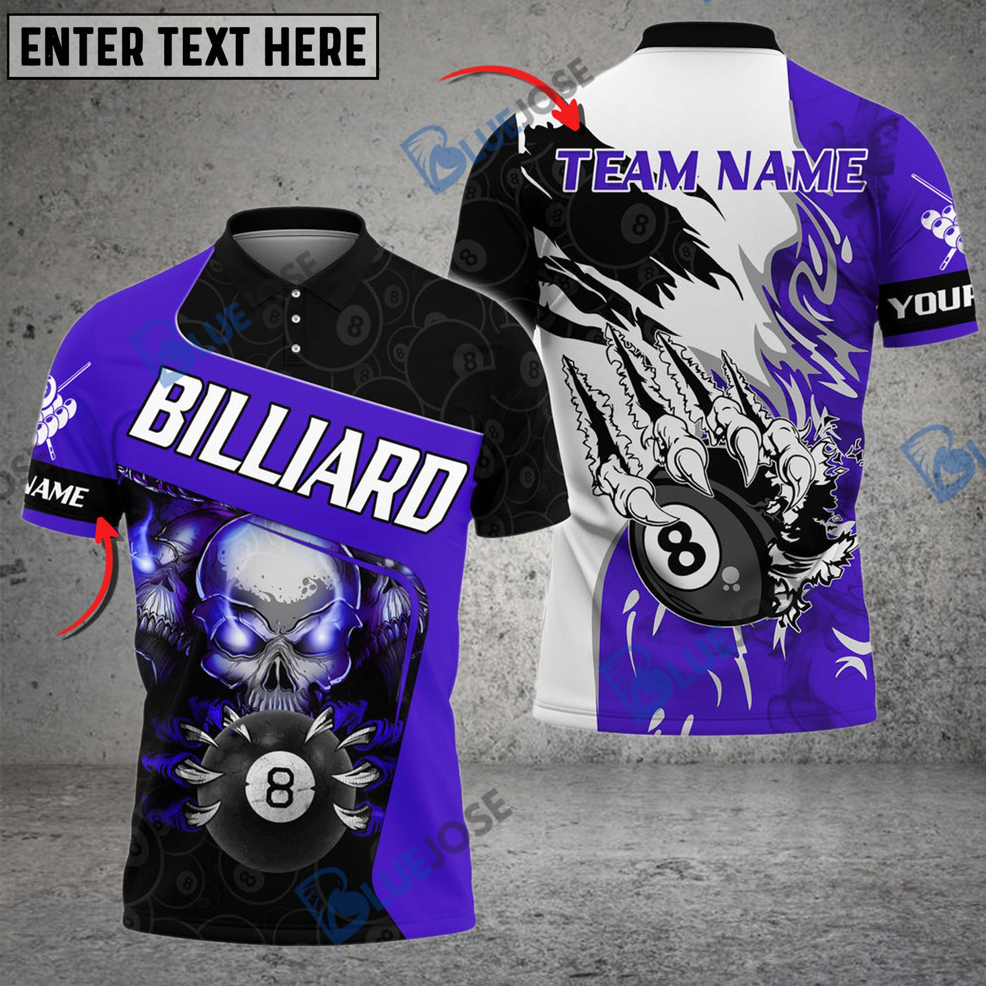 BlueJose Billiards Ball 8 Skull Sharp Claws Personalized Name, Team Name Unisex Shirt ( 6 Colors )