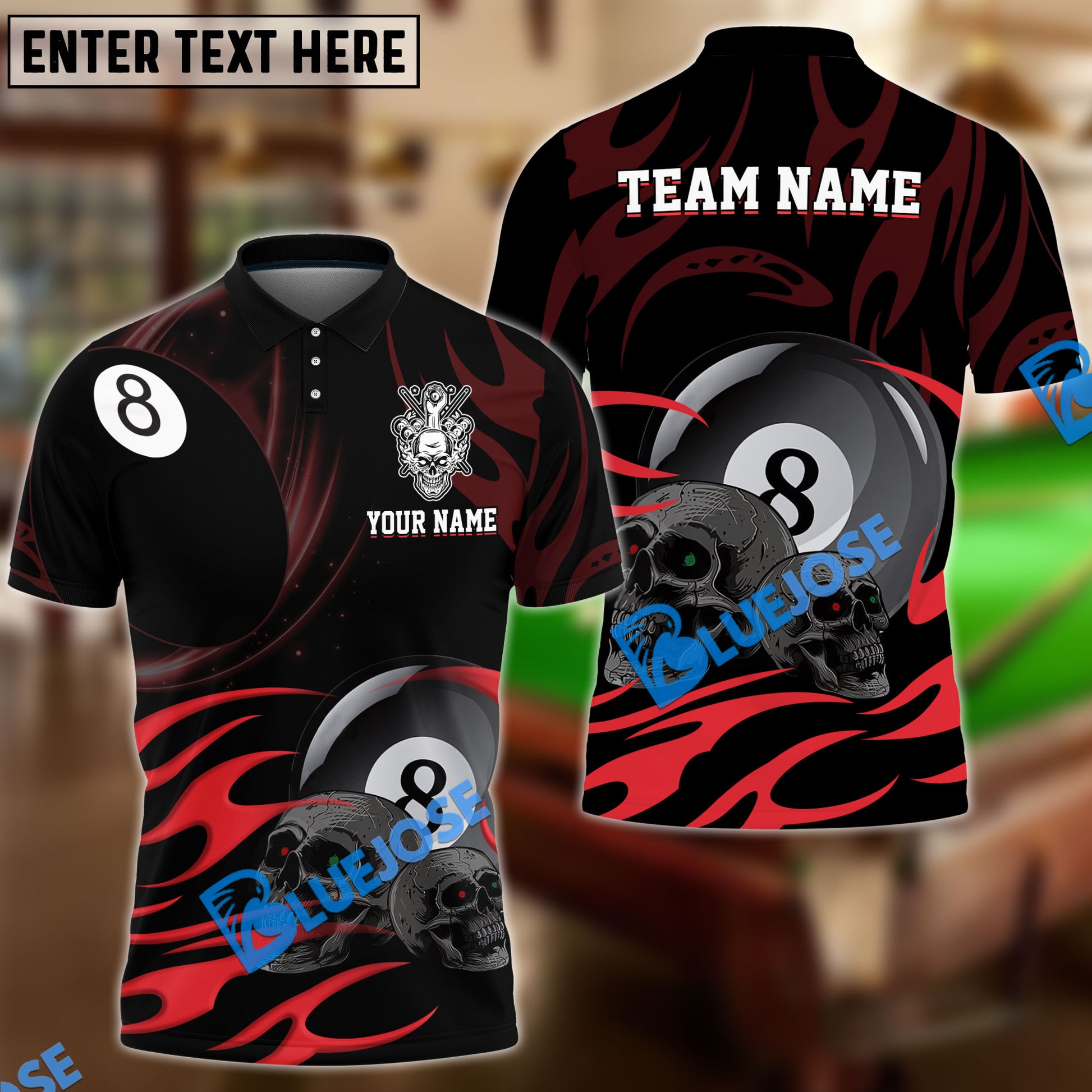 BlueJose Billiards Ball 8 Skulls Personalized Name, Team Name Unisex Shirt ( 6 Colors )