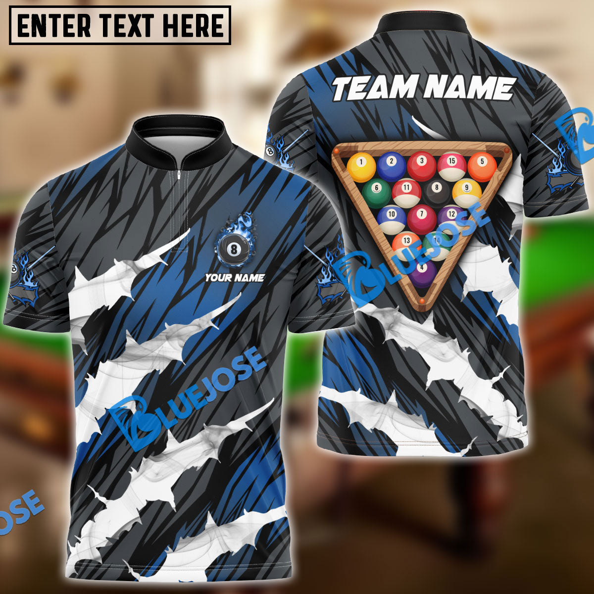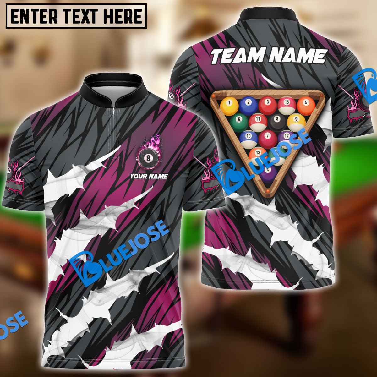 BlueJose Billiards Ball 8 Tearing Rack Personalized Name, Team Name Unisex Shirt ( 4 Colors )