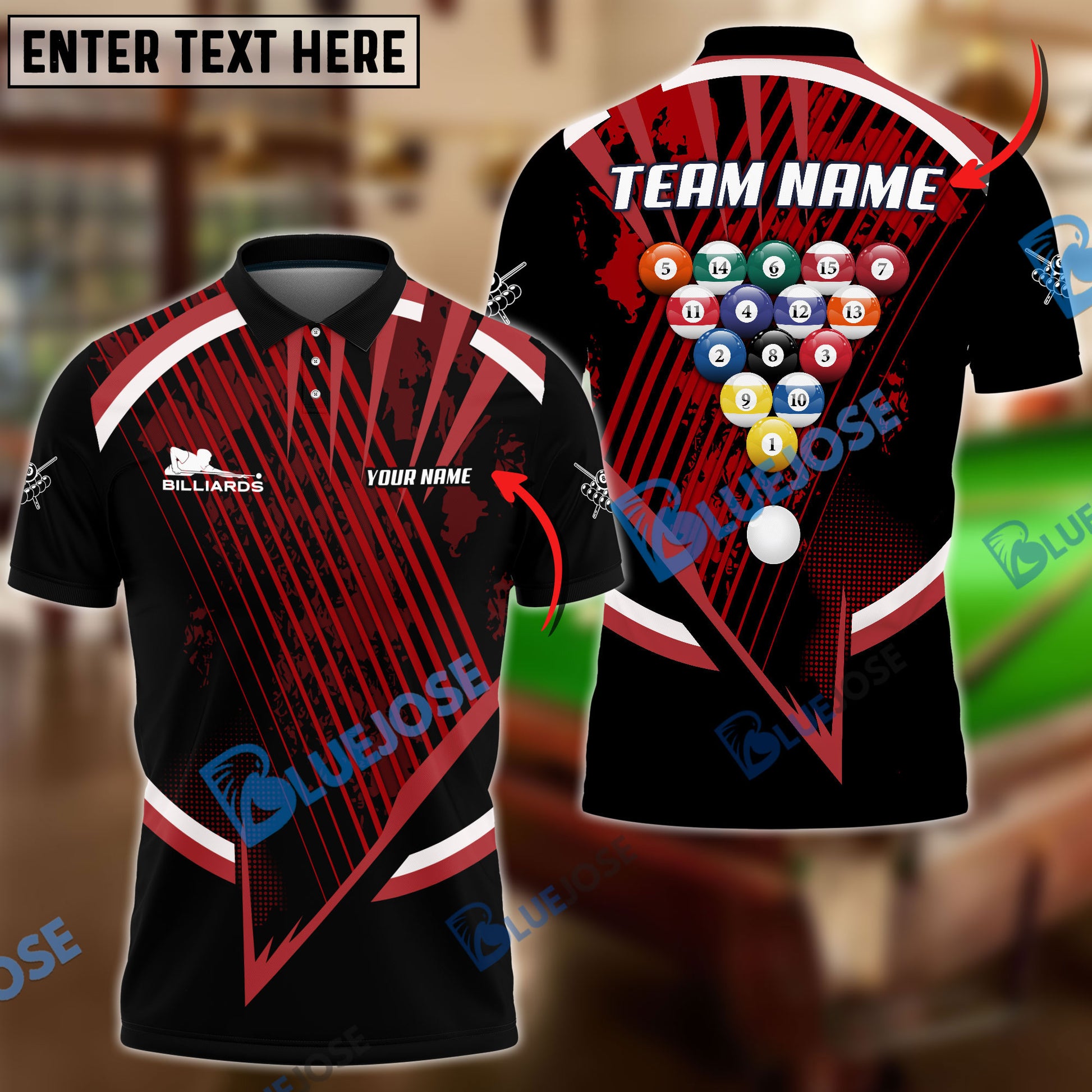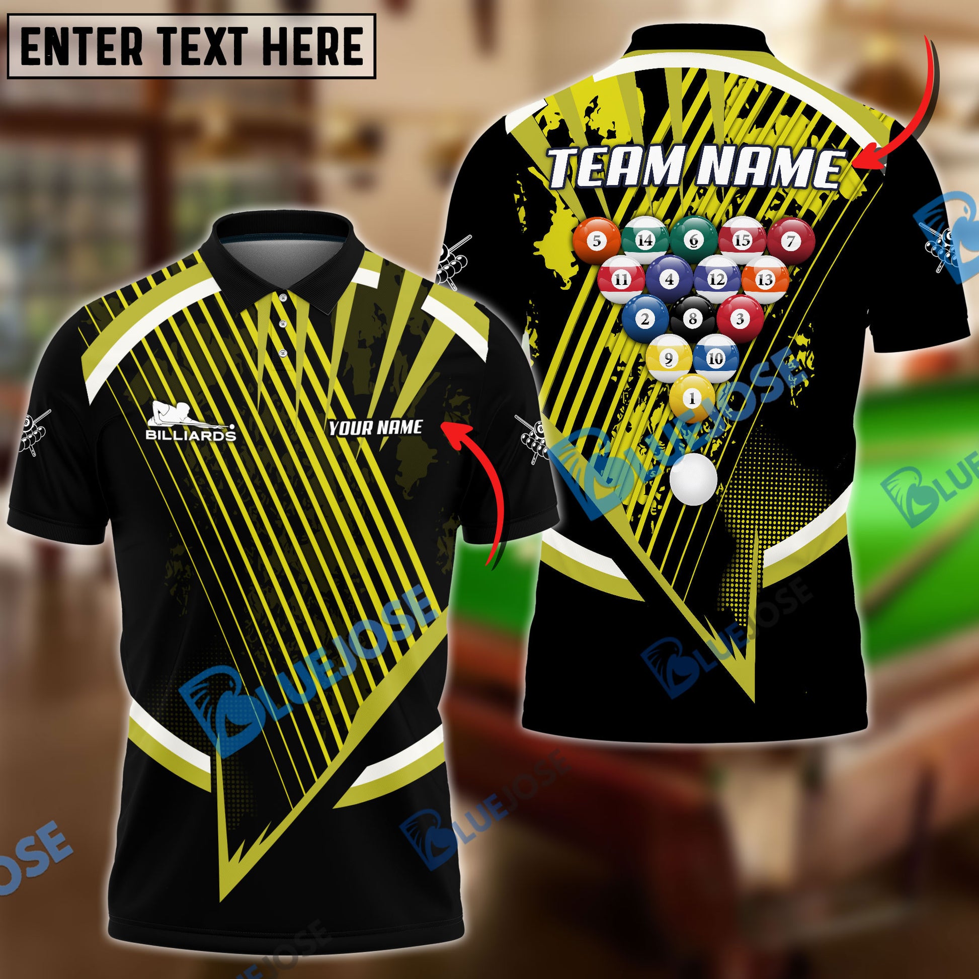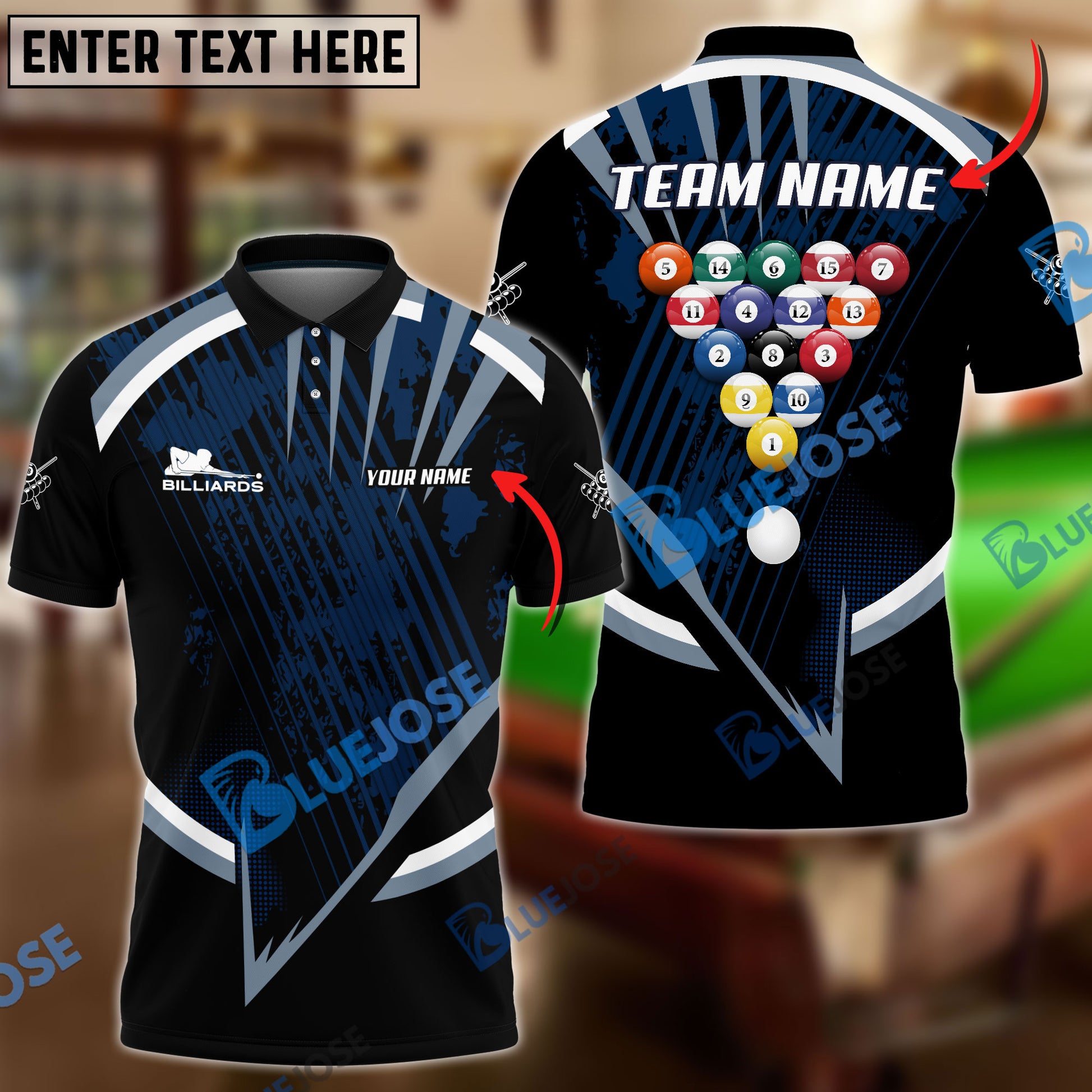 BlueJose Billiards Ball 8 Tournament Concept Personalized Name, Team Name Unisex Shirt ( 4 Colors )